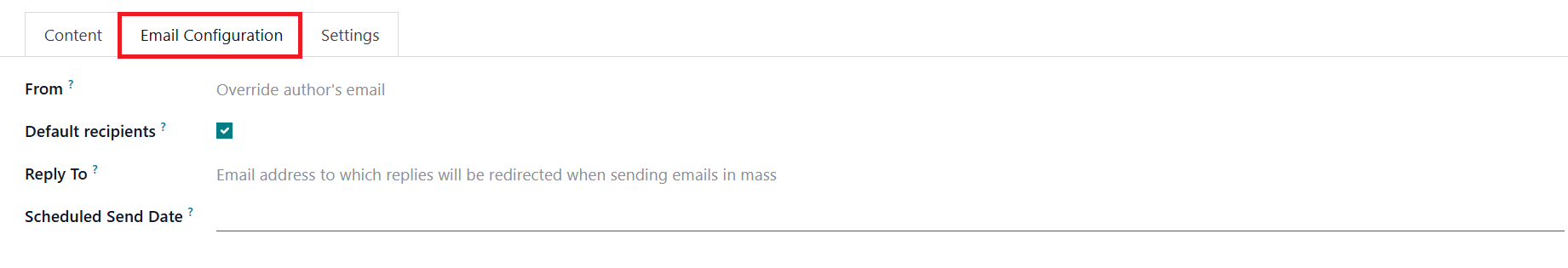 Default Recipients, Reply To,