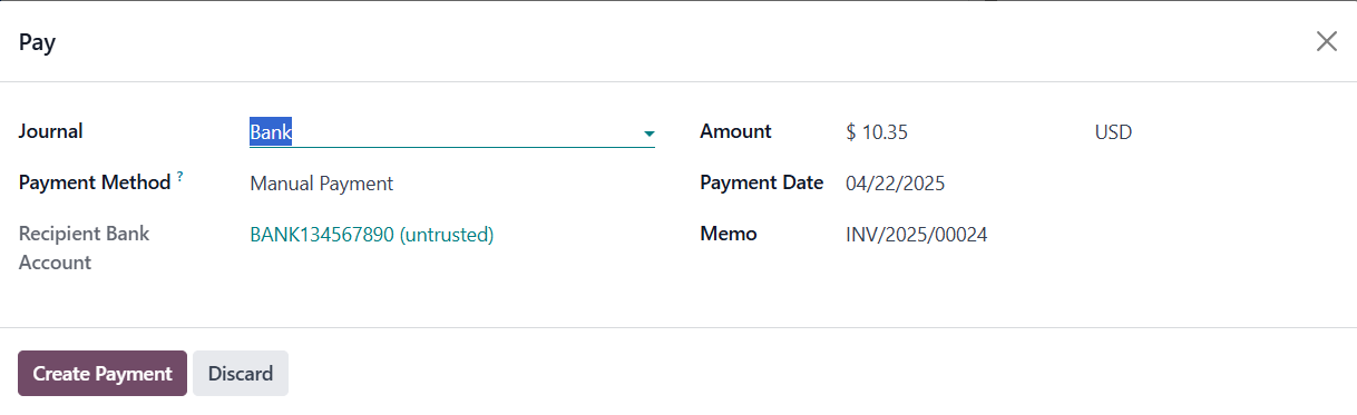Clicking the Create Payment
