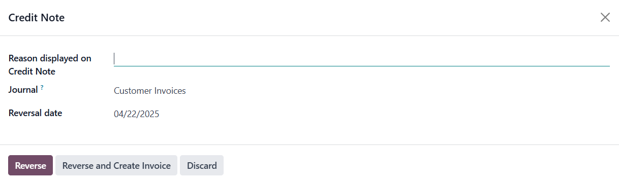The Add Credit Note button