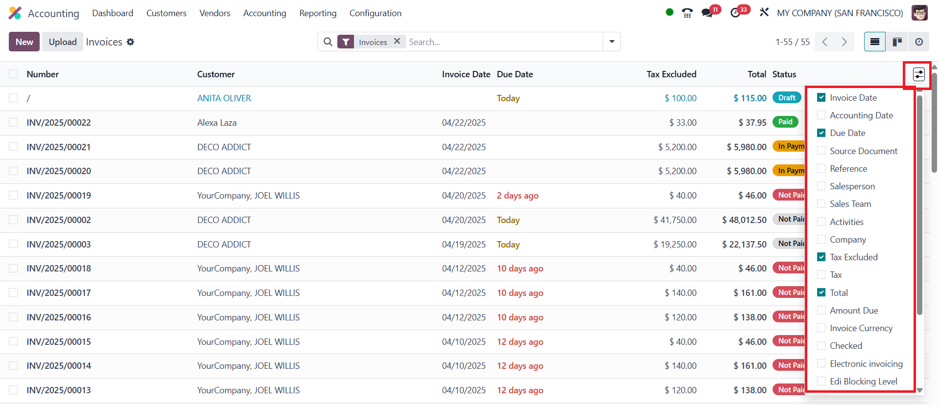 Invoicing Status, and more.
