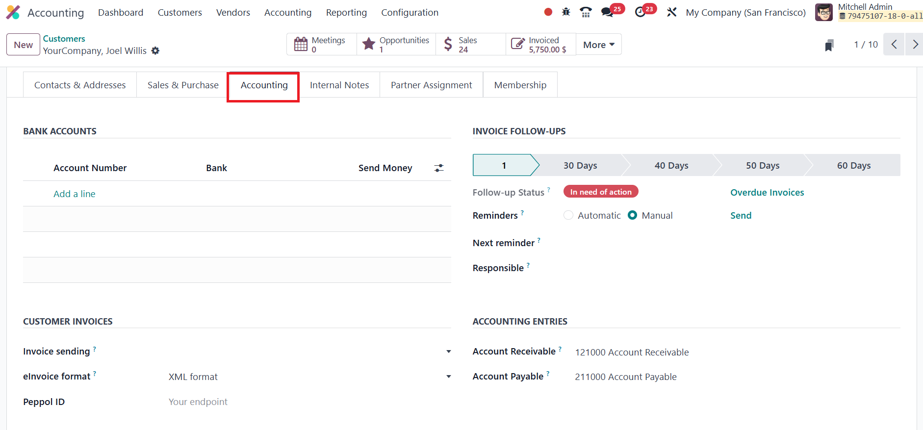 fiscal details. The Accounting tab in Odoo allows businesses to