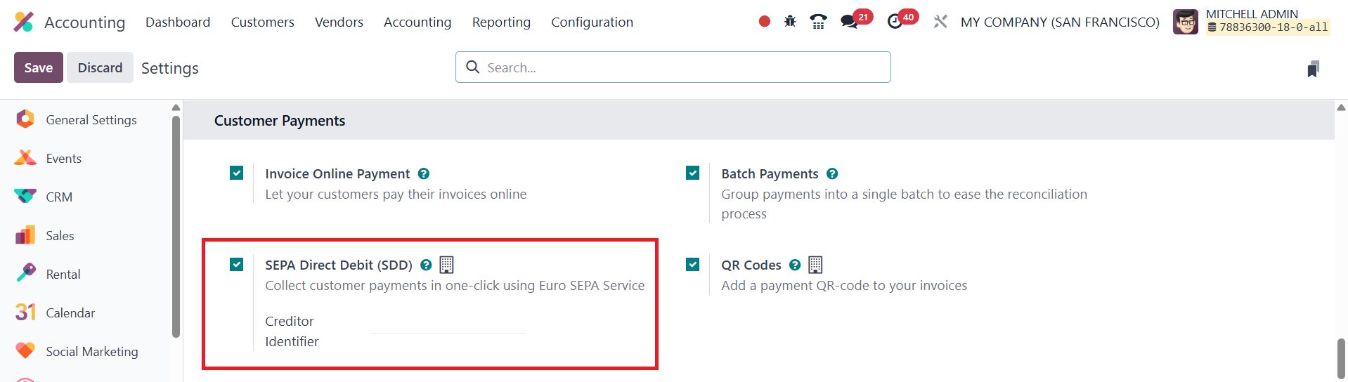 activate the SEPA Direct Debit option. After enabling this feature,