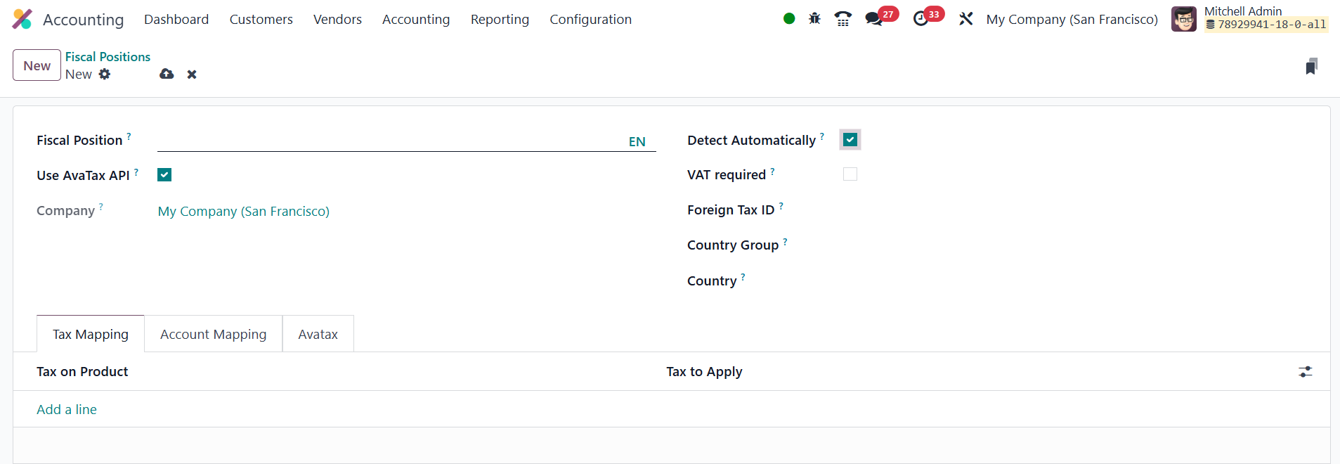 In Odoo 18 Accounting, fiscal positions let you adapt taxes and