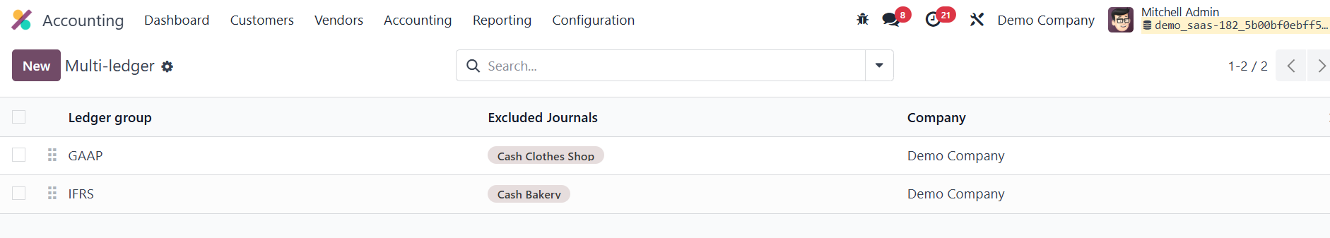 Configuration ▸ Multi‑Ledgers, click New, assign a name, link it to