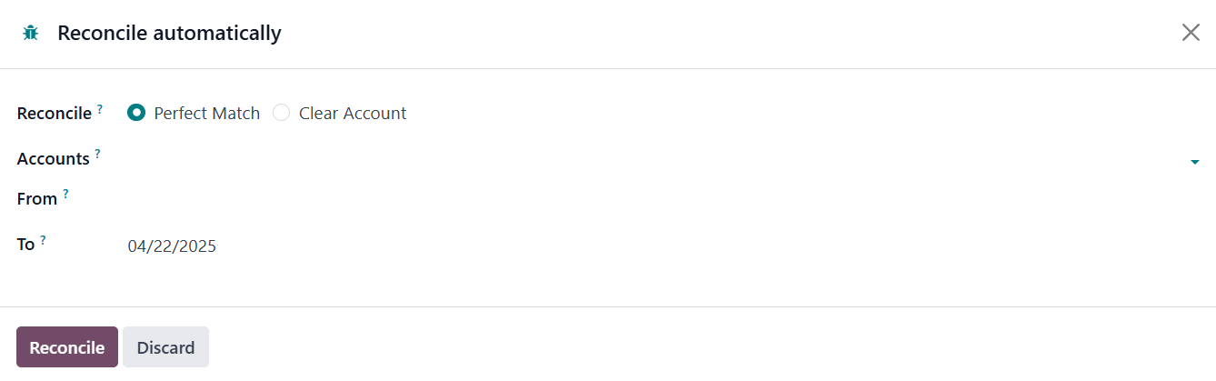 Draft, In Process, Sent, Not Sent, No Bank Matching, Reconciled, Not