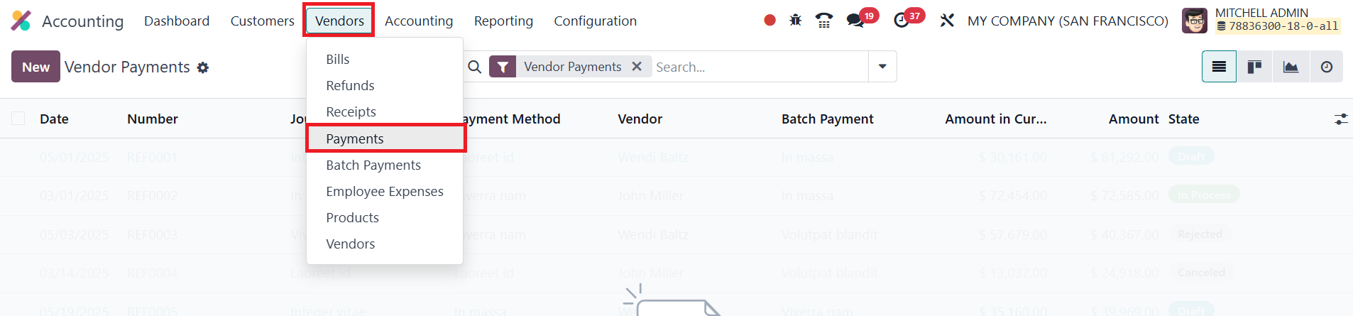 Similarly, vendor payments can be managed under Vendors > Payments.