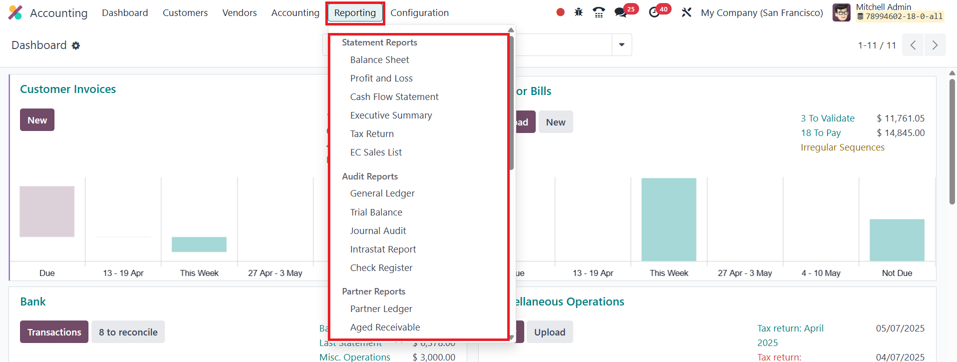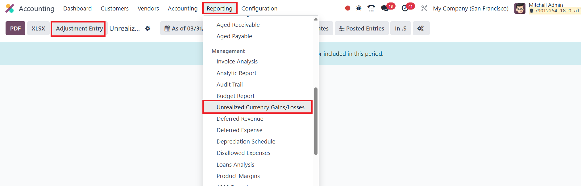 In Odoo 18 Accounting, the