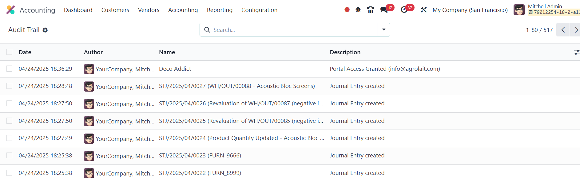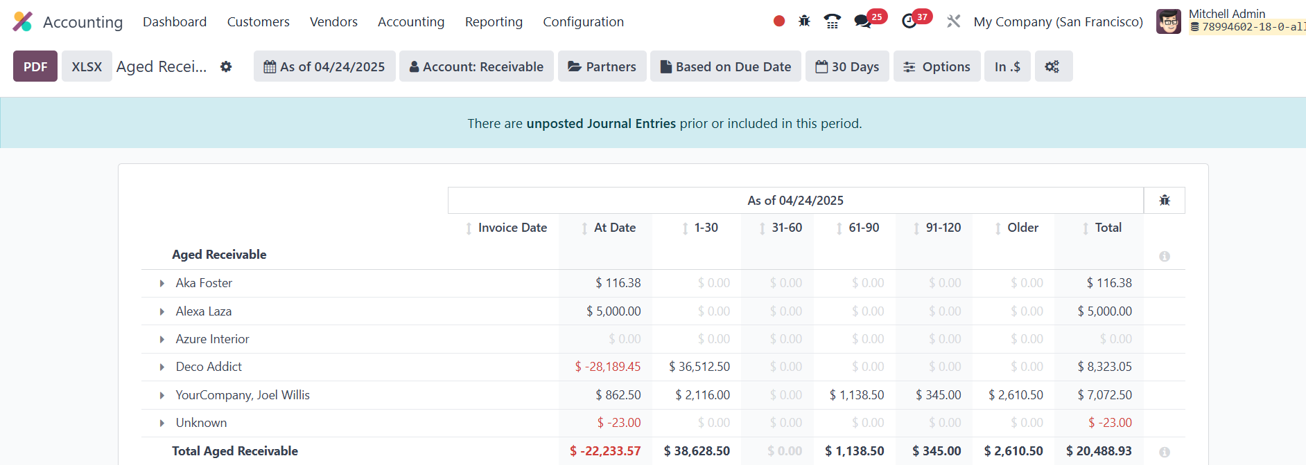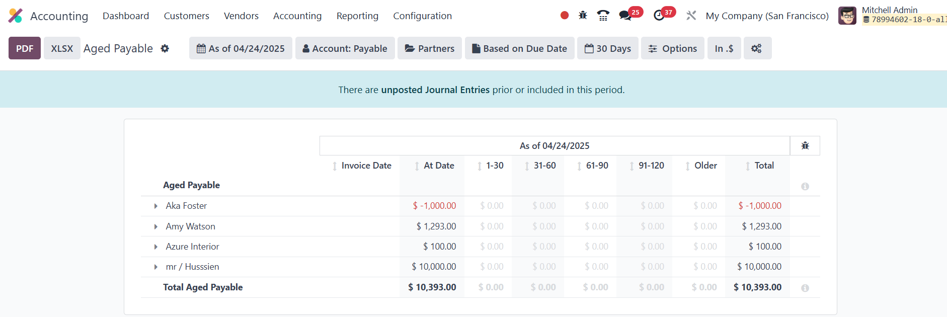 any given point in time. Odoo