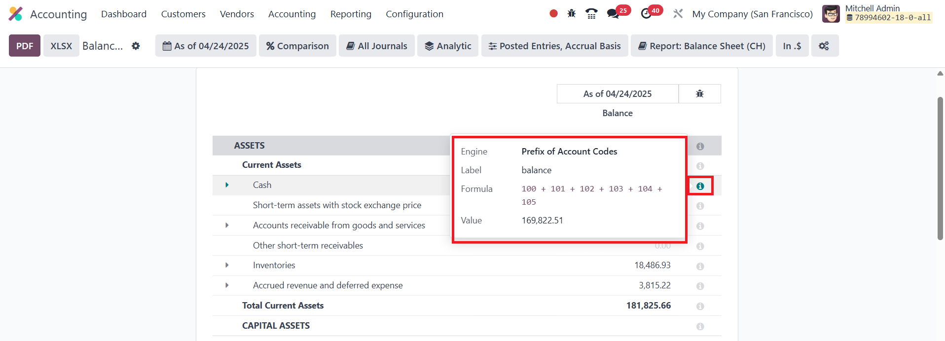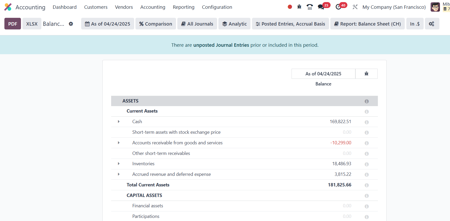 The Balance Sheet report provides