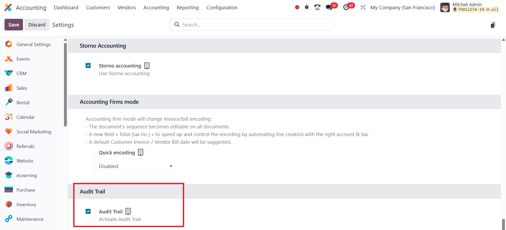 compliance. In Odoo 18