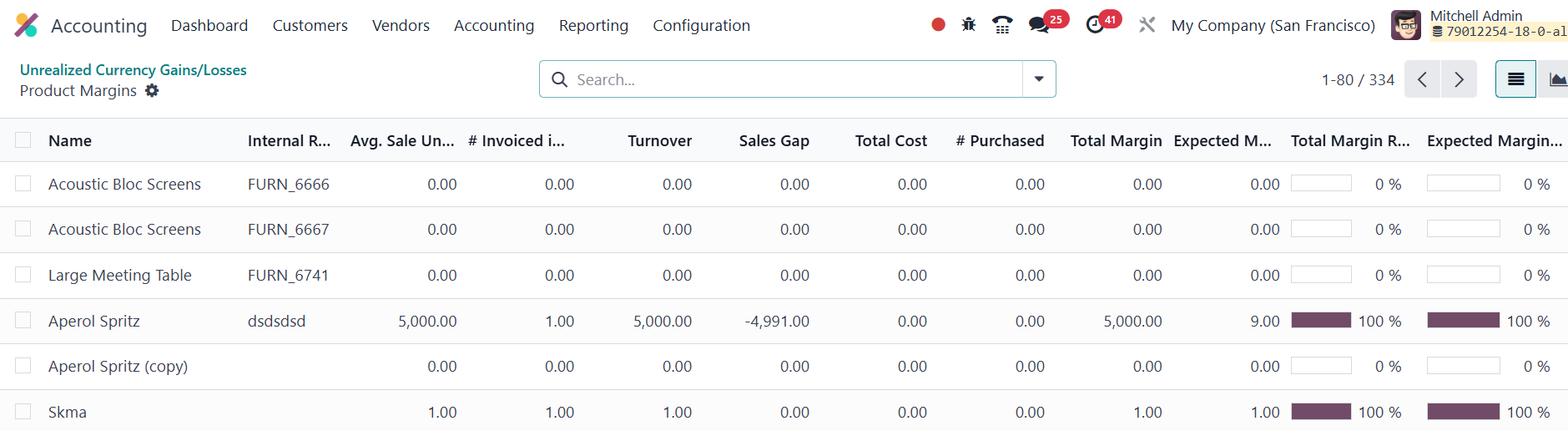 Odoo 18’s Product Margin report