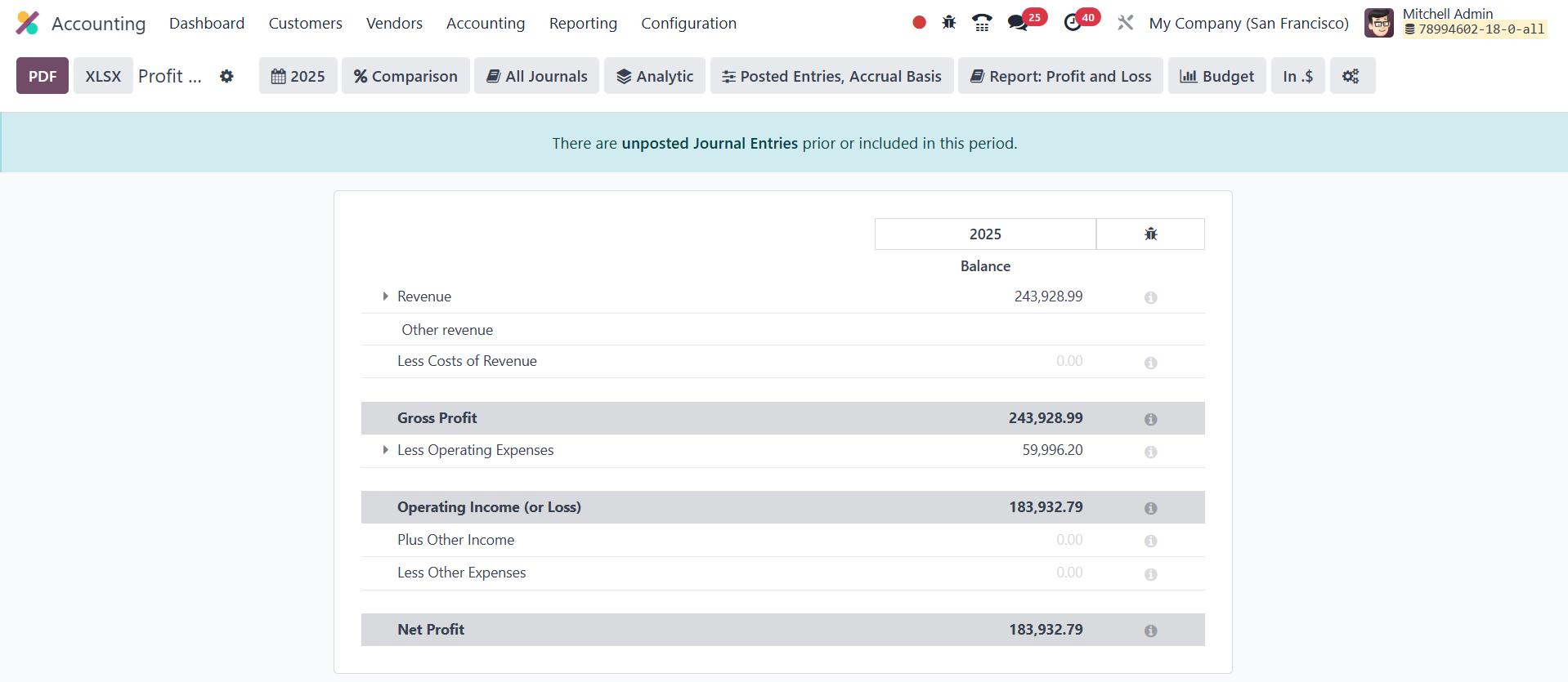 The Profit & Loss report is one