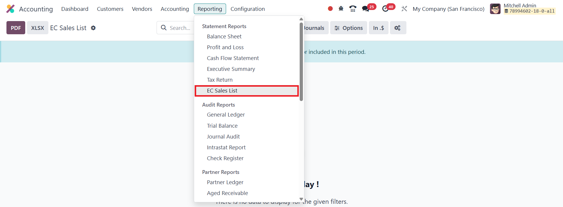 Reporting menu provides a