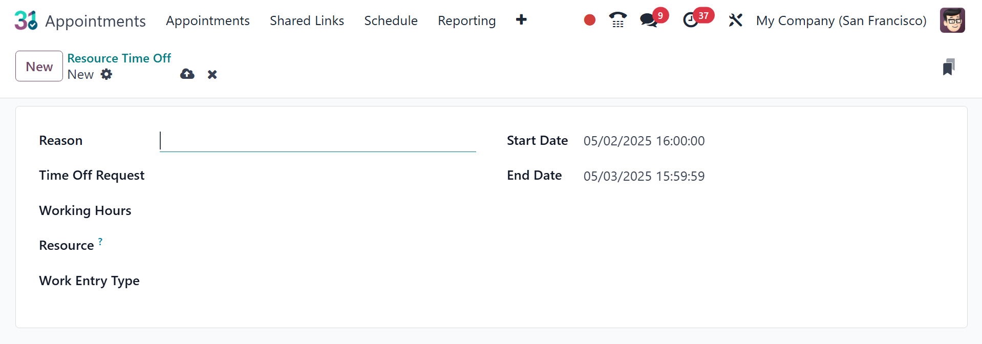 Here, provide the reason for the resource time off, time off request,