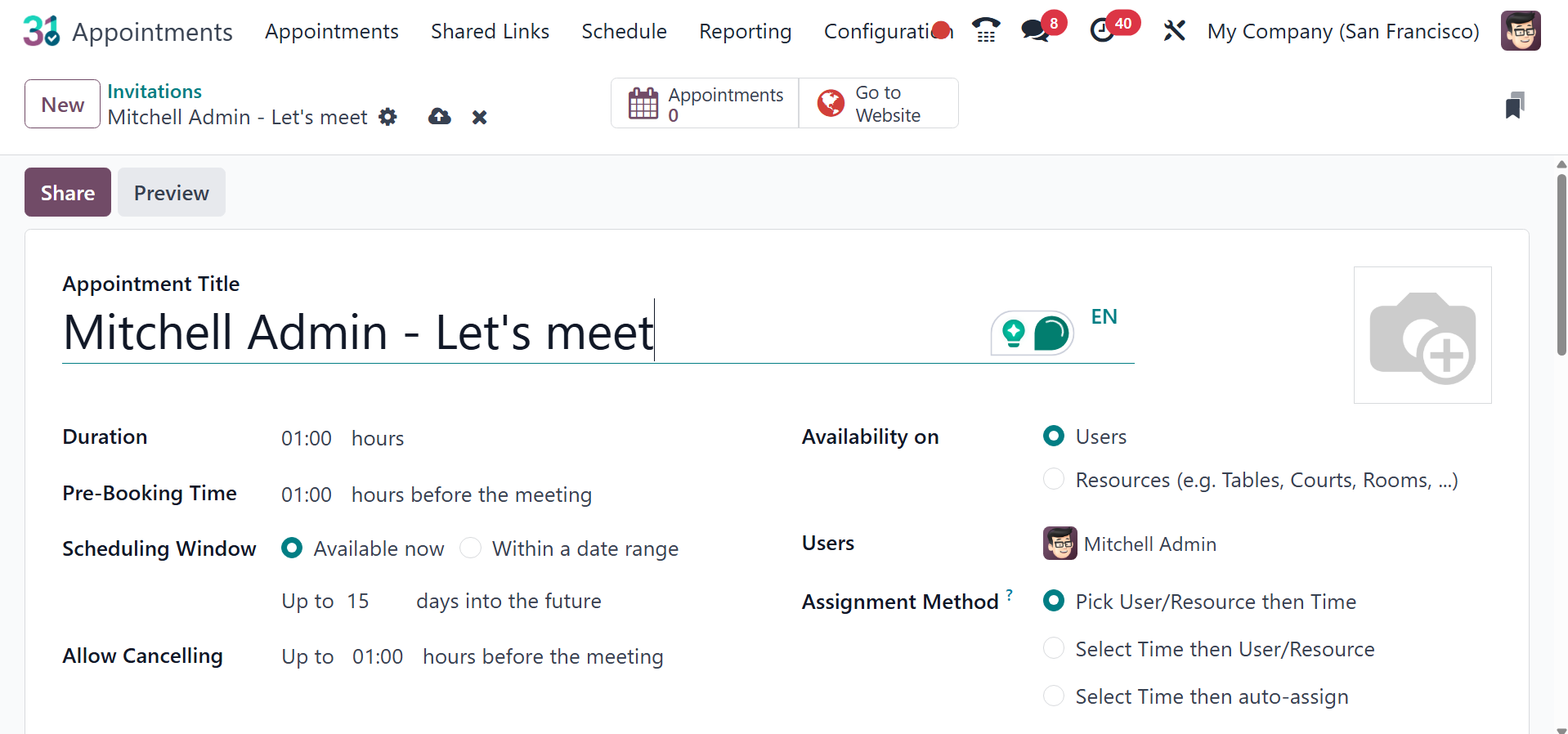create a new invitation. An appointment form is comparable to the
