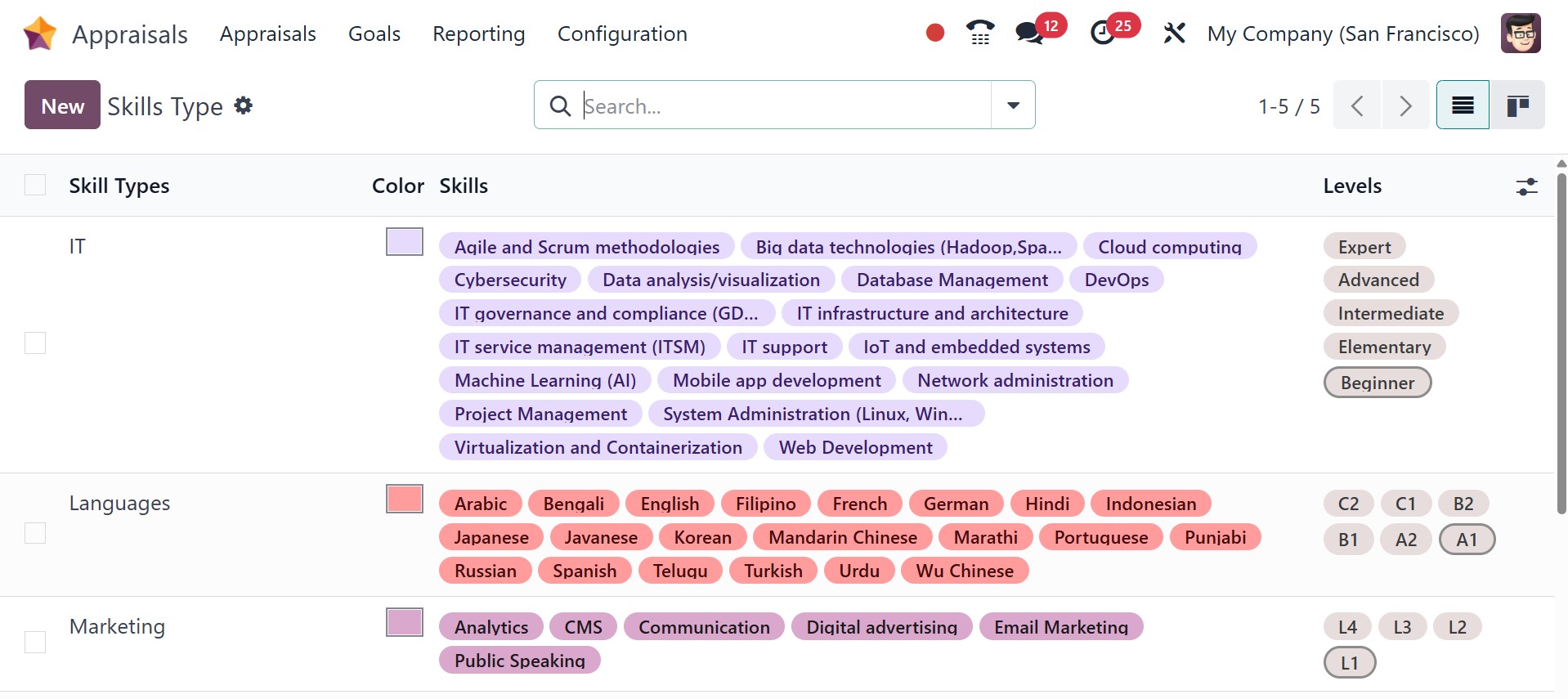 Related skills are grouped together using a classification method called a Skills Type. It aids in the systematic organization of employee competencies and is commonly employed in performance reviews to assess and monitor staff growth. The page will be, as in the image below.