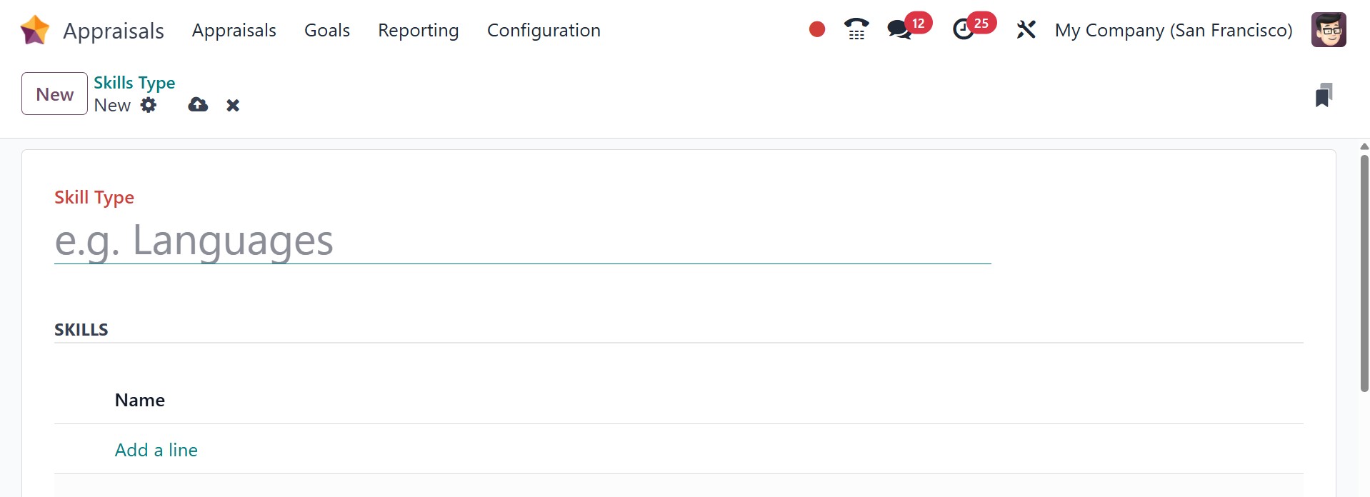 Using the NEW option, you can easily add a new skill, as in the screenshot below.