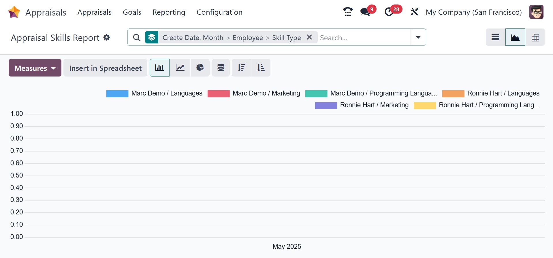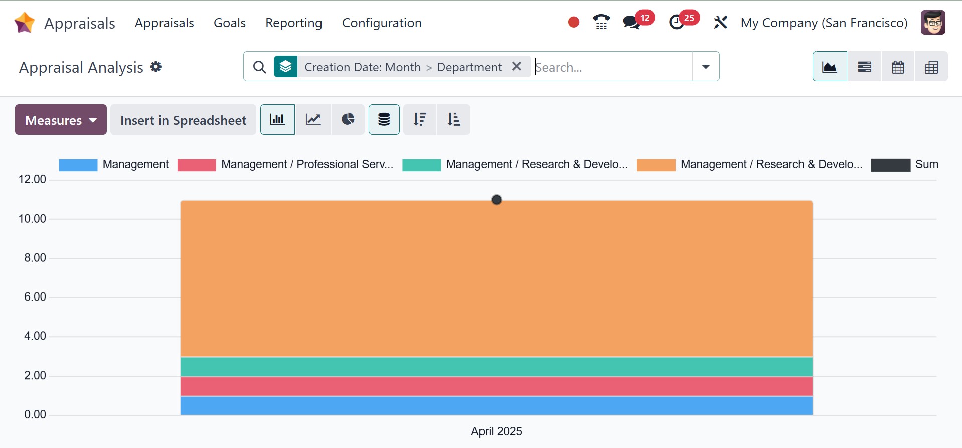 appraisals for each department on the Y-axis. Users can also see the