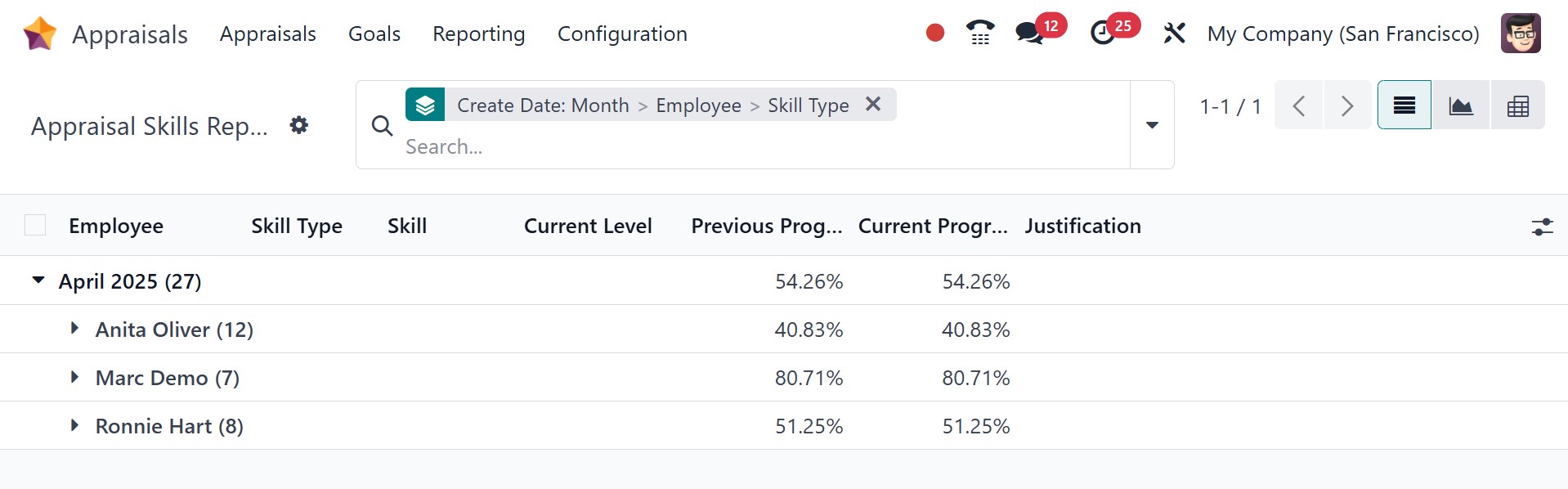 The Oodo 18 Appraisal module makes it easy to do the employee