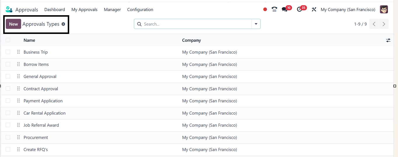 To create a new Approval Type, click on the ‘New’ button and