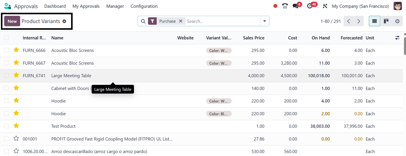 Approval Types, Products, and Product Variants.