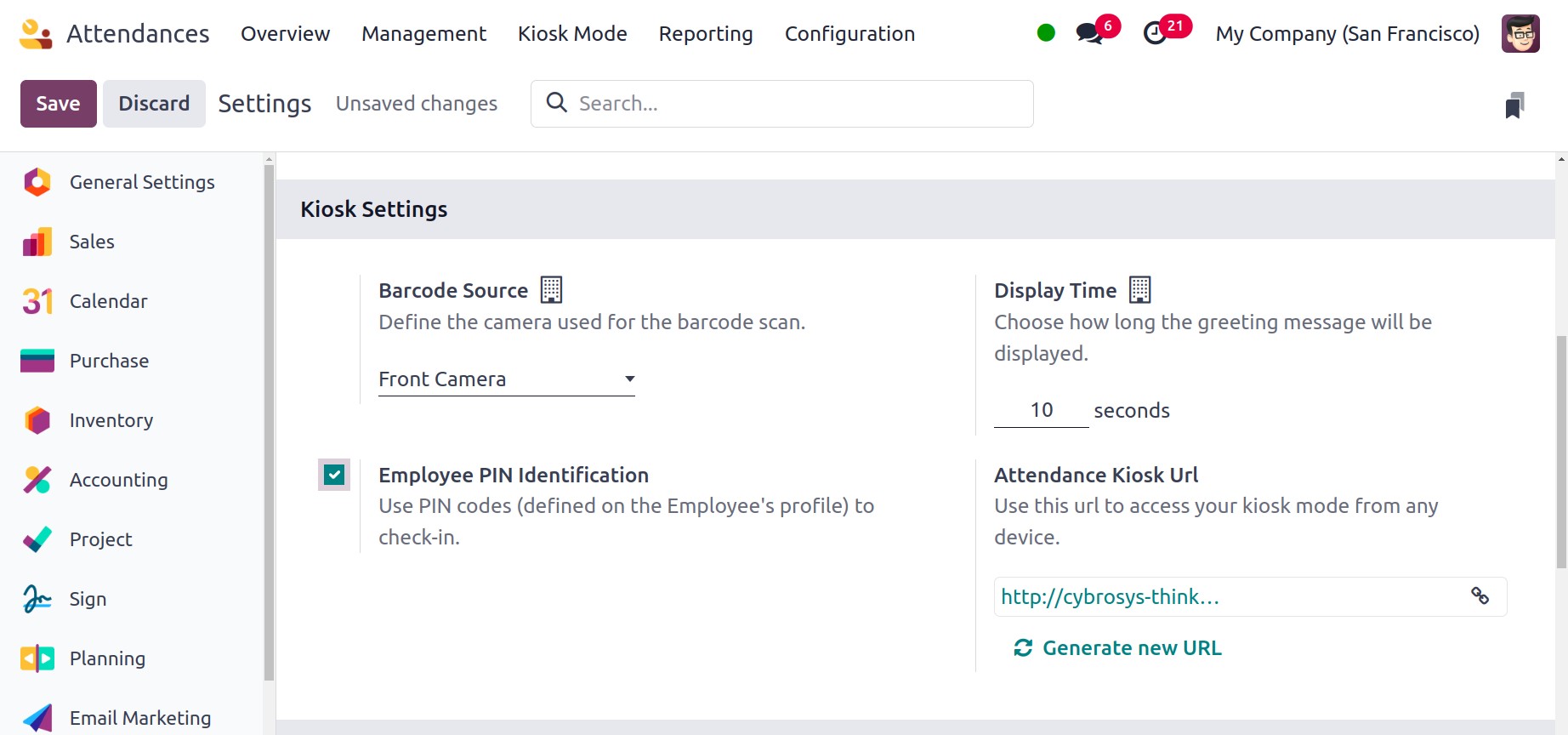 supplied in the Attendance Kiosk Url section. Note that your kiosk