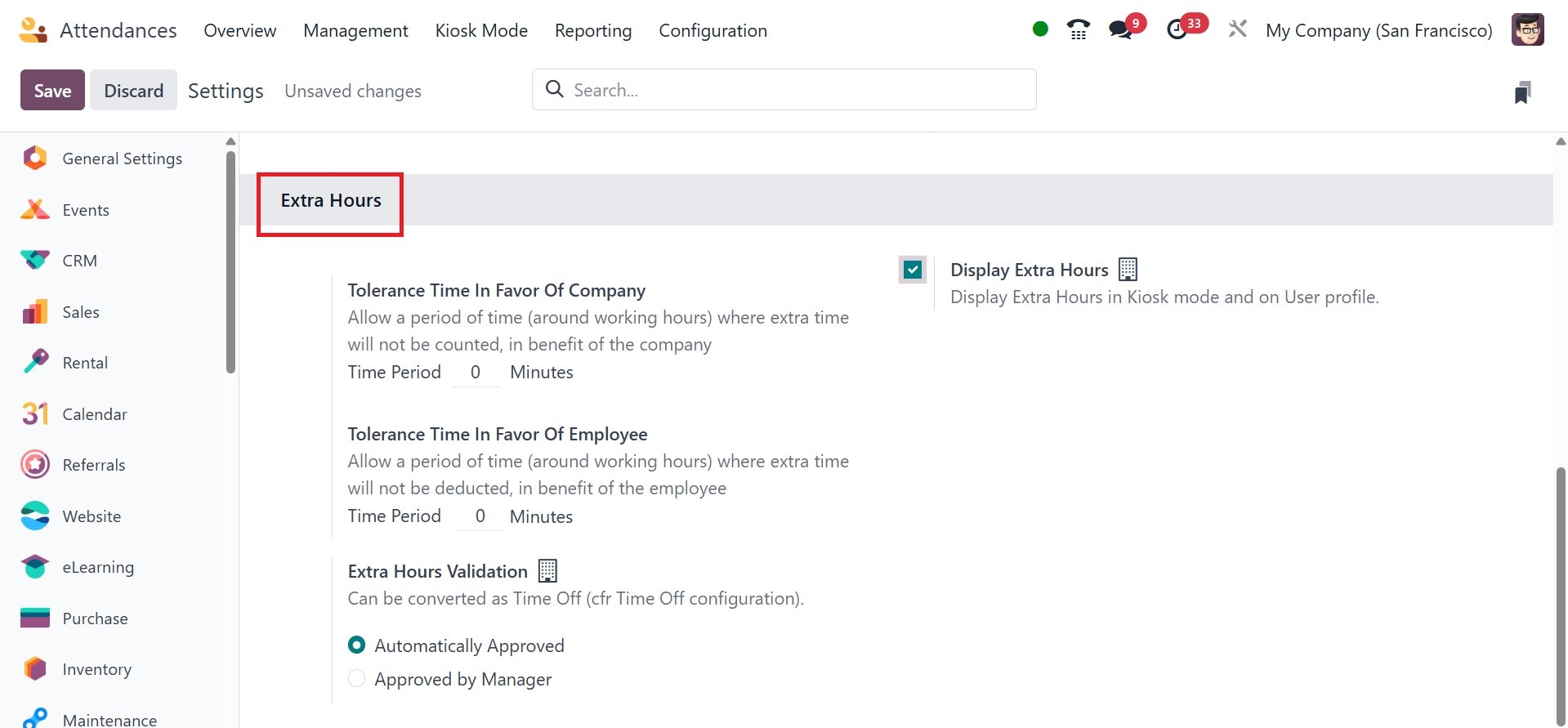in the Odoo 18 Attendance module. Under the Extra Hours option, you