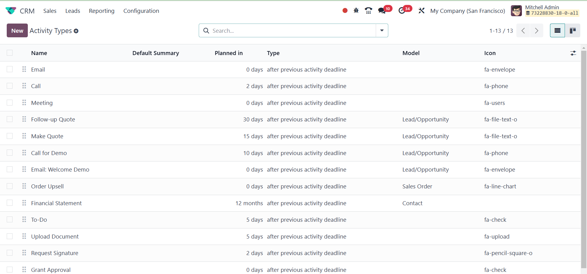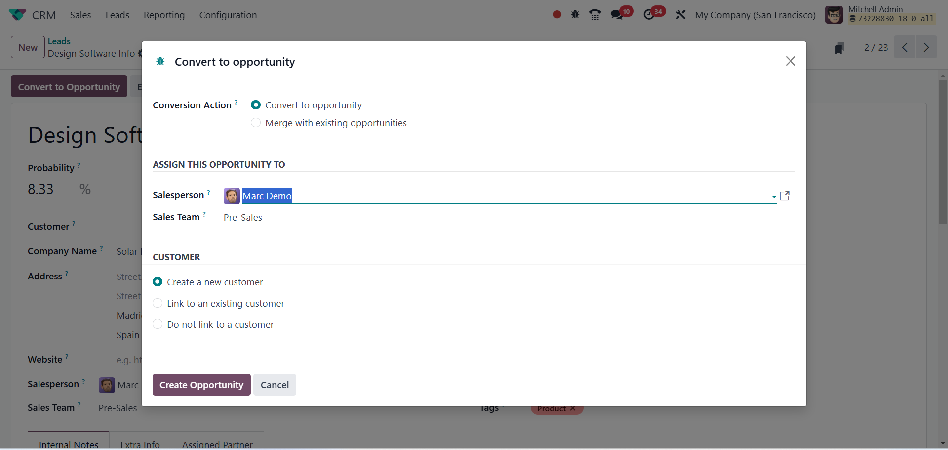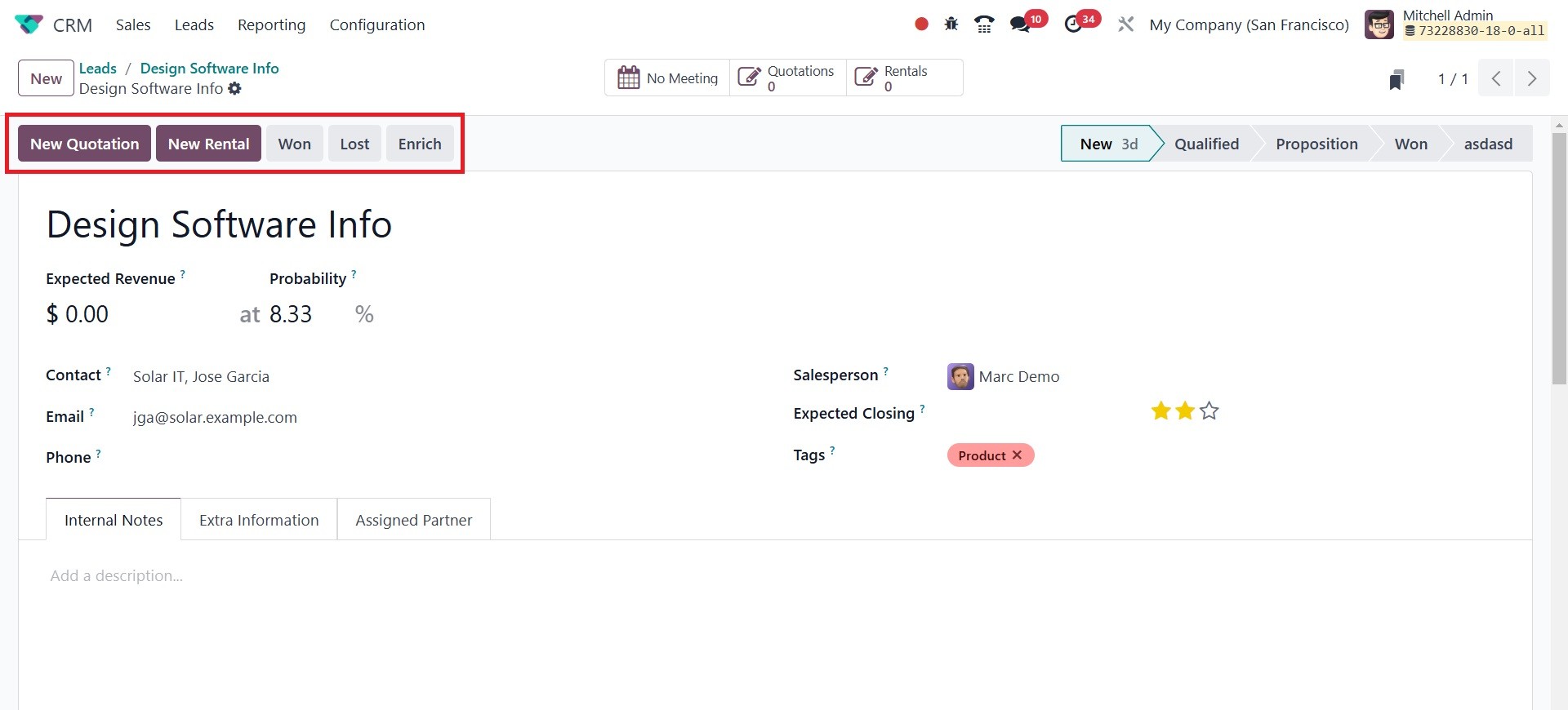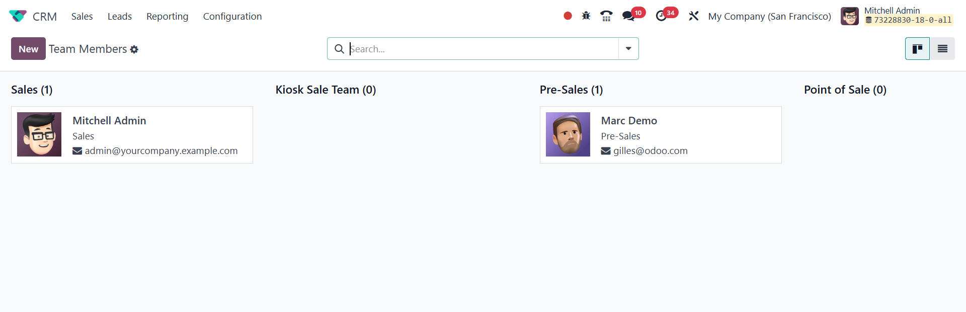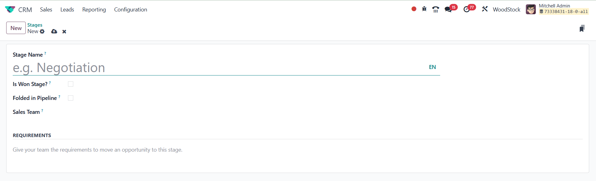 The Odoo 18 CRM module's