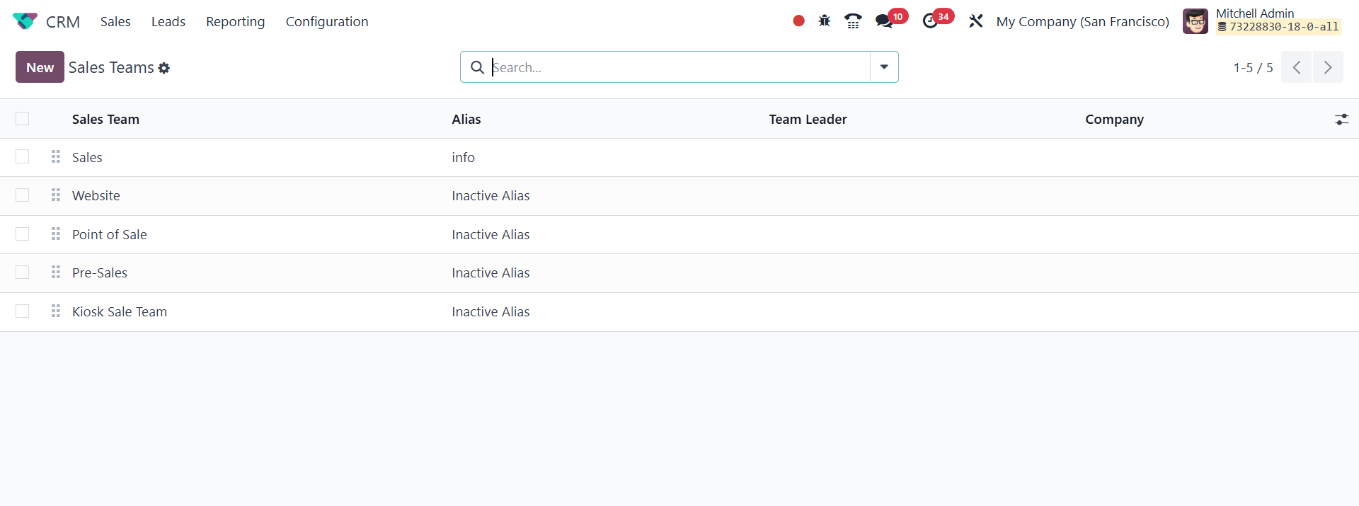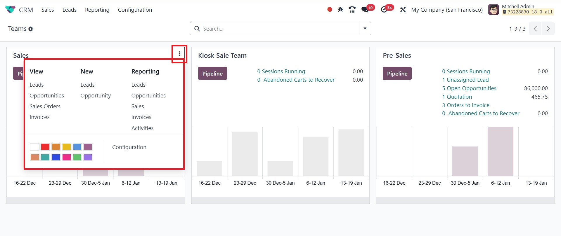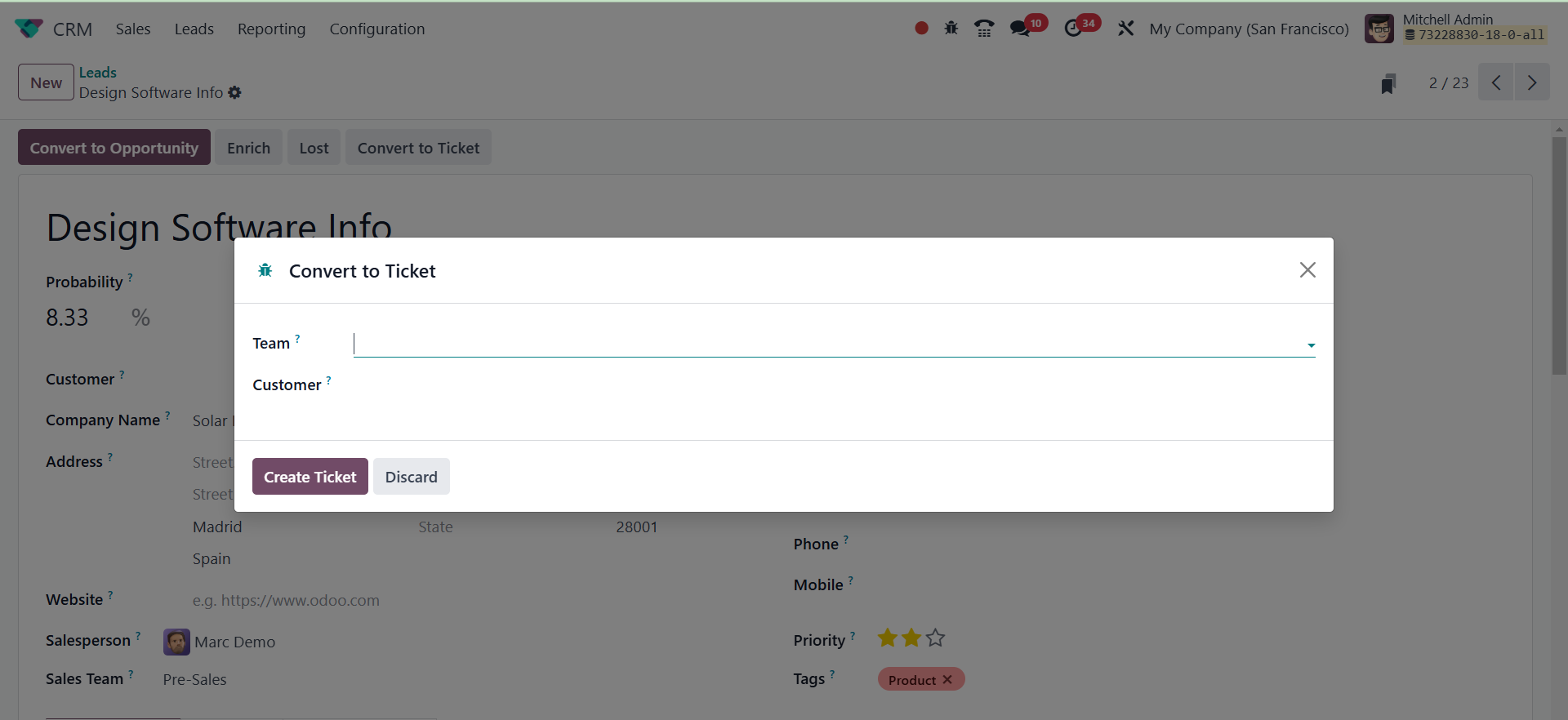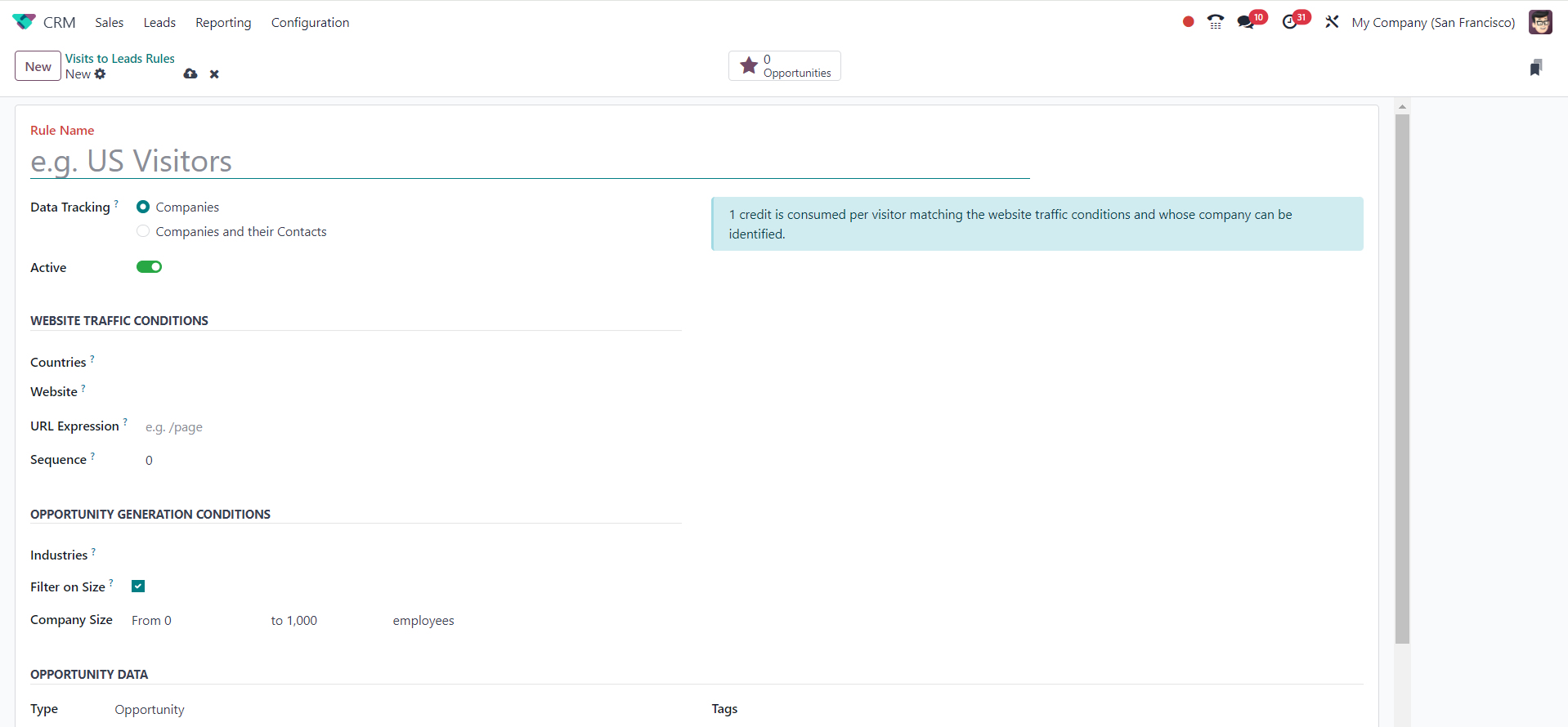 The Odoo 18 CRM module's