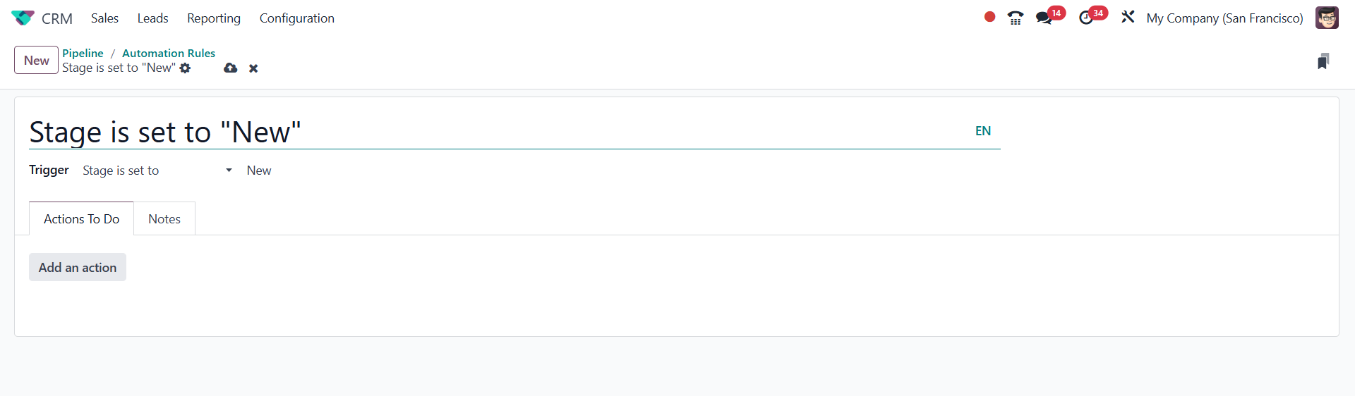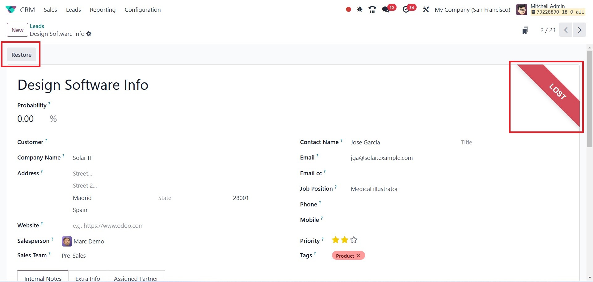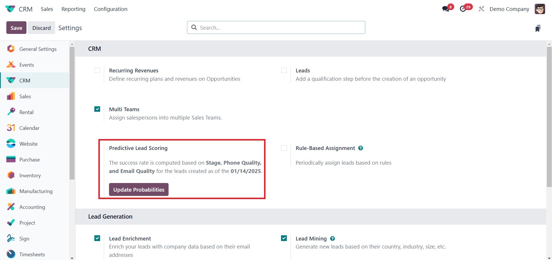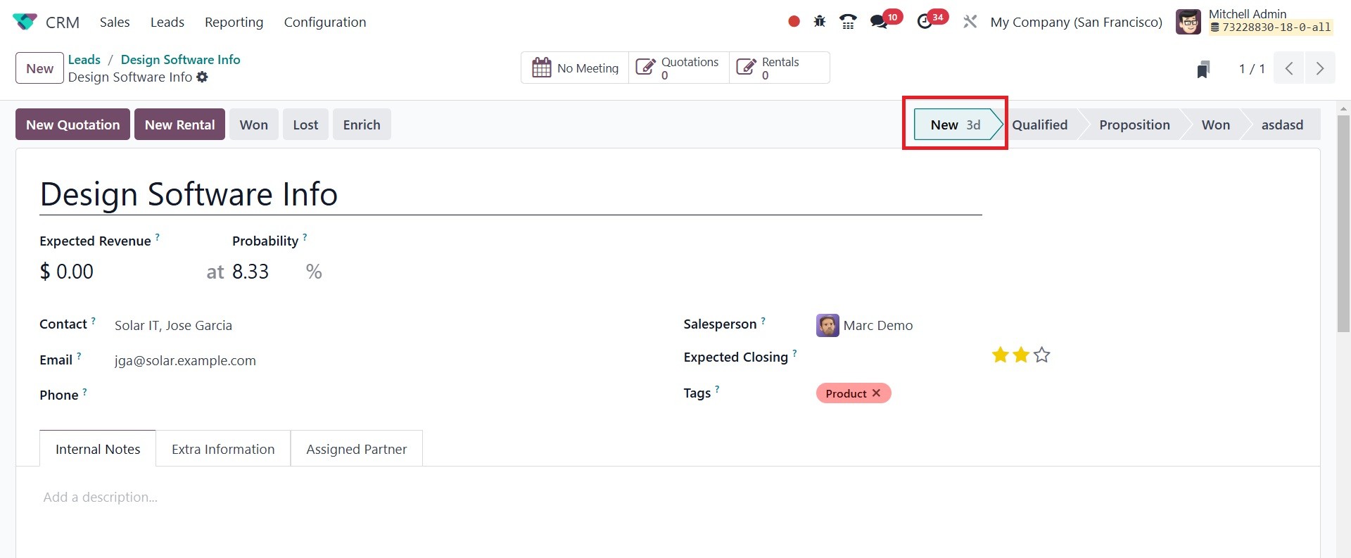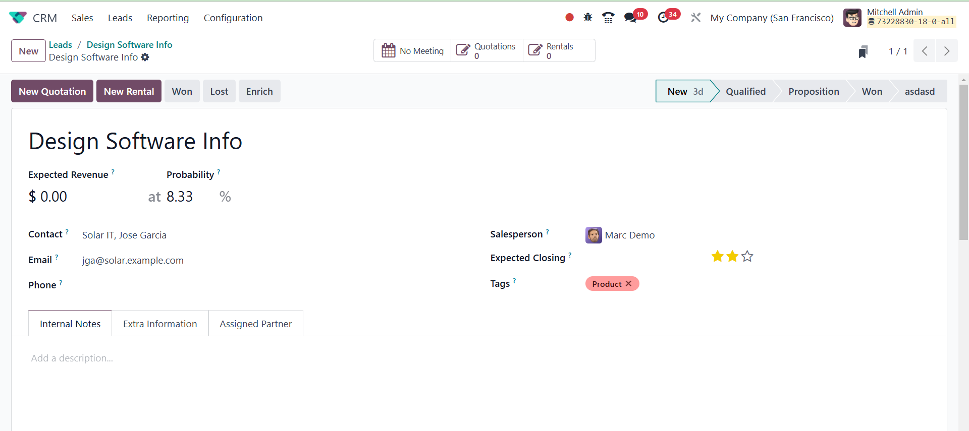 The Odoo 18 CRM module's