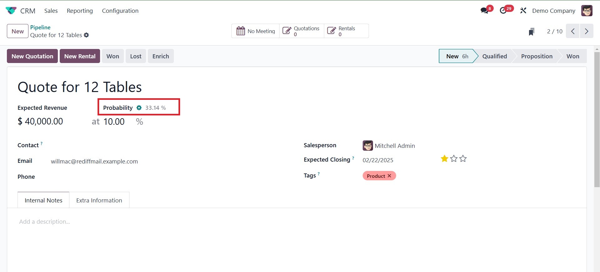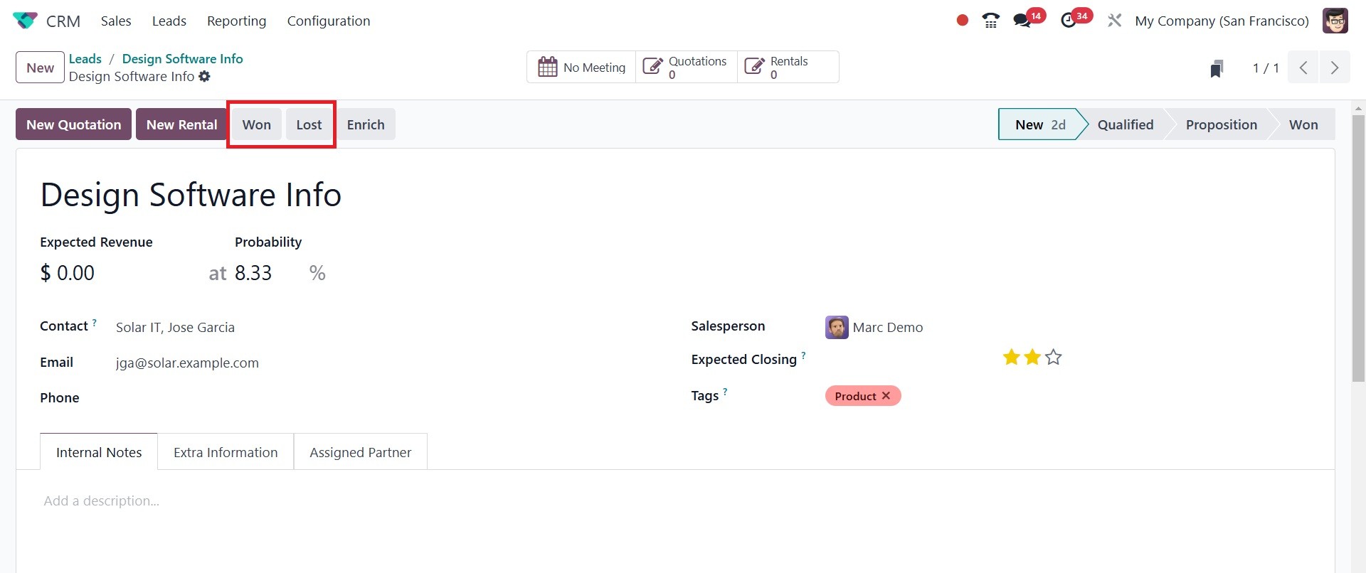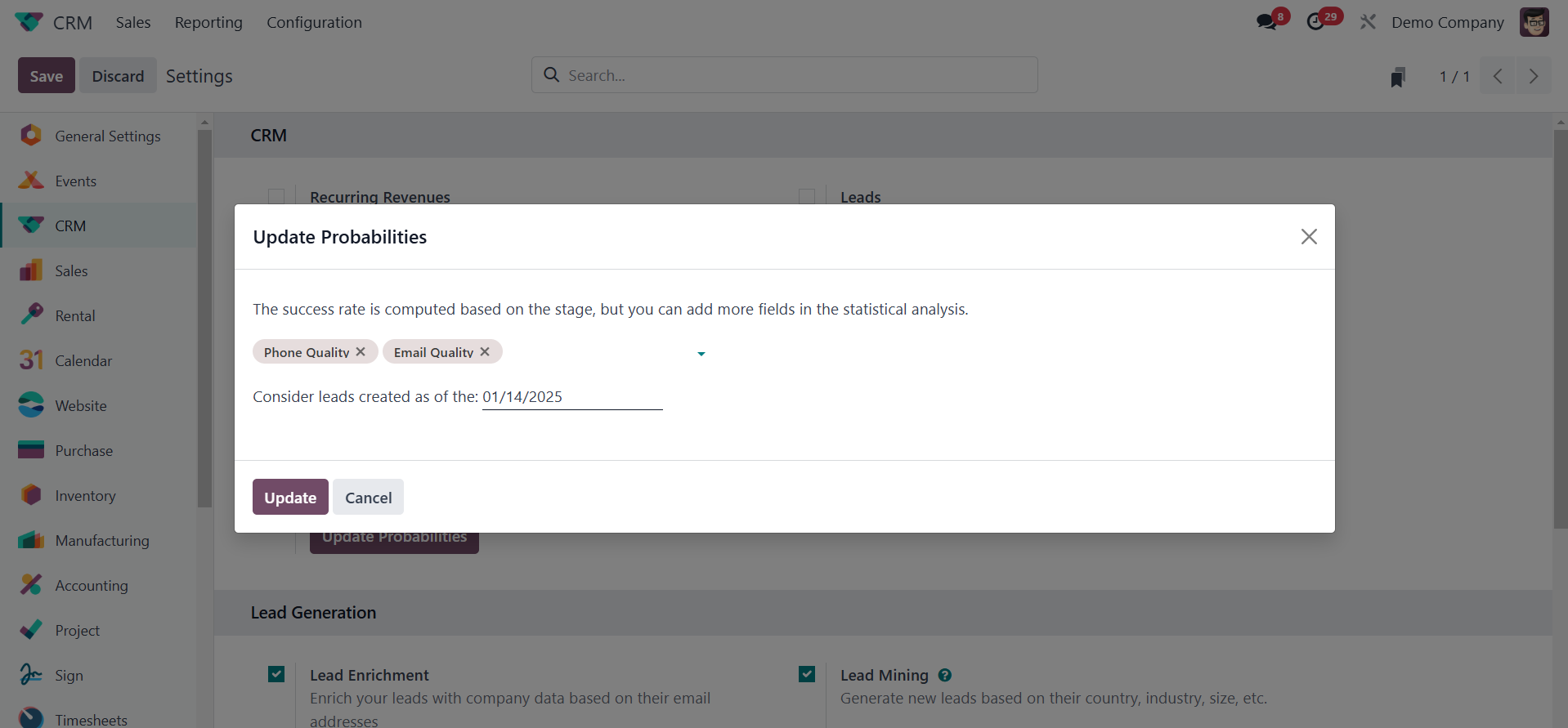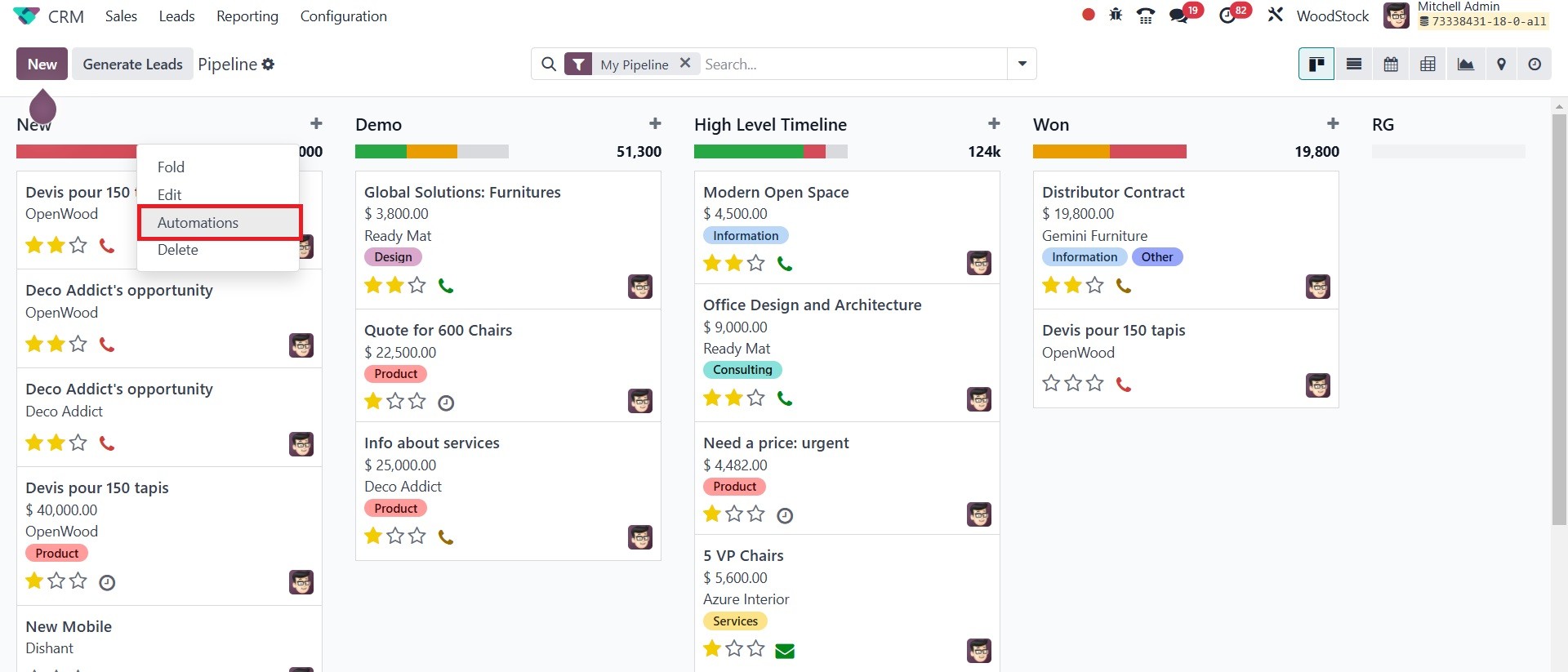 The Odoo 18 CRM module's