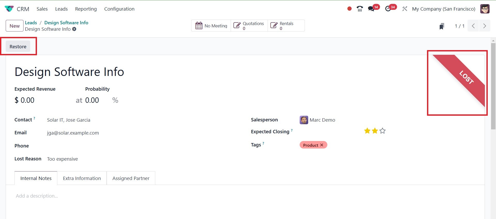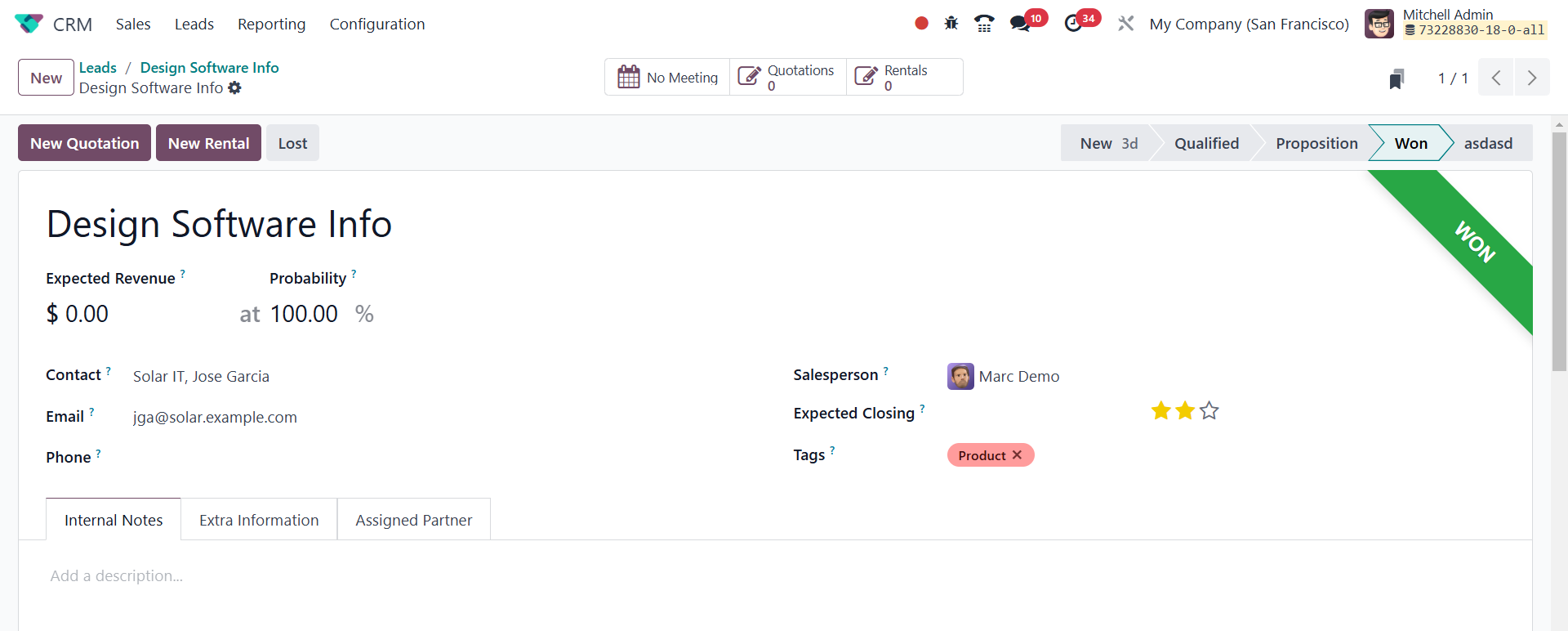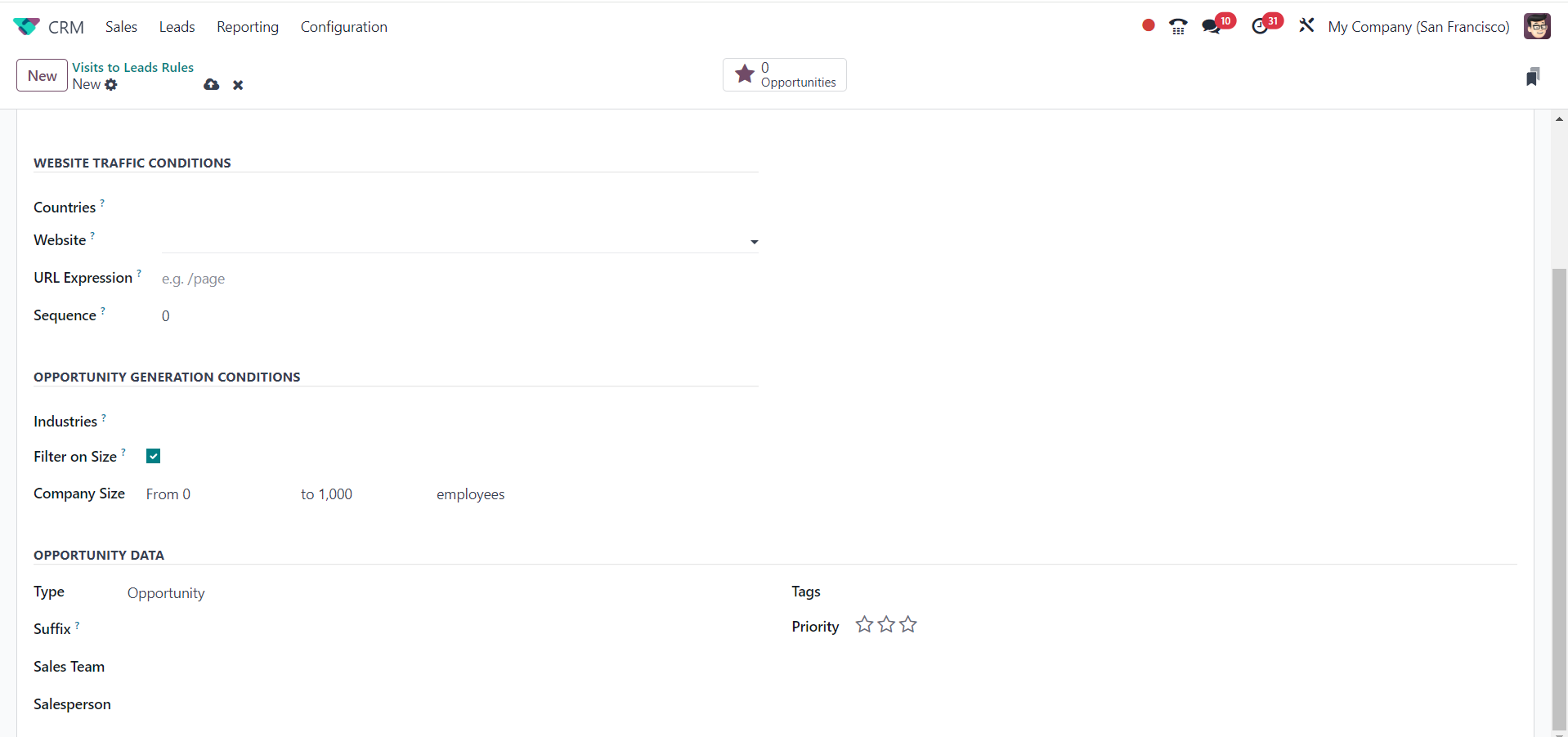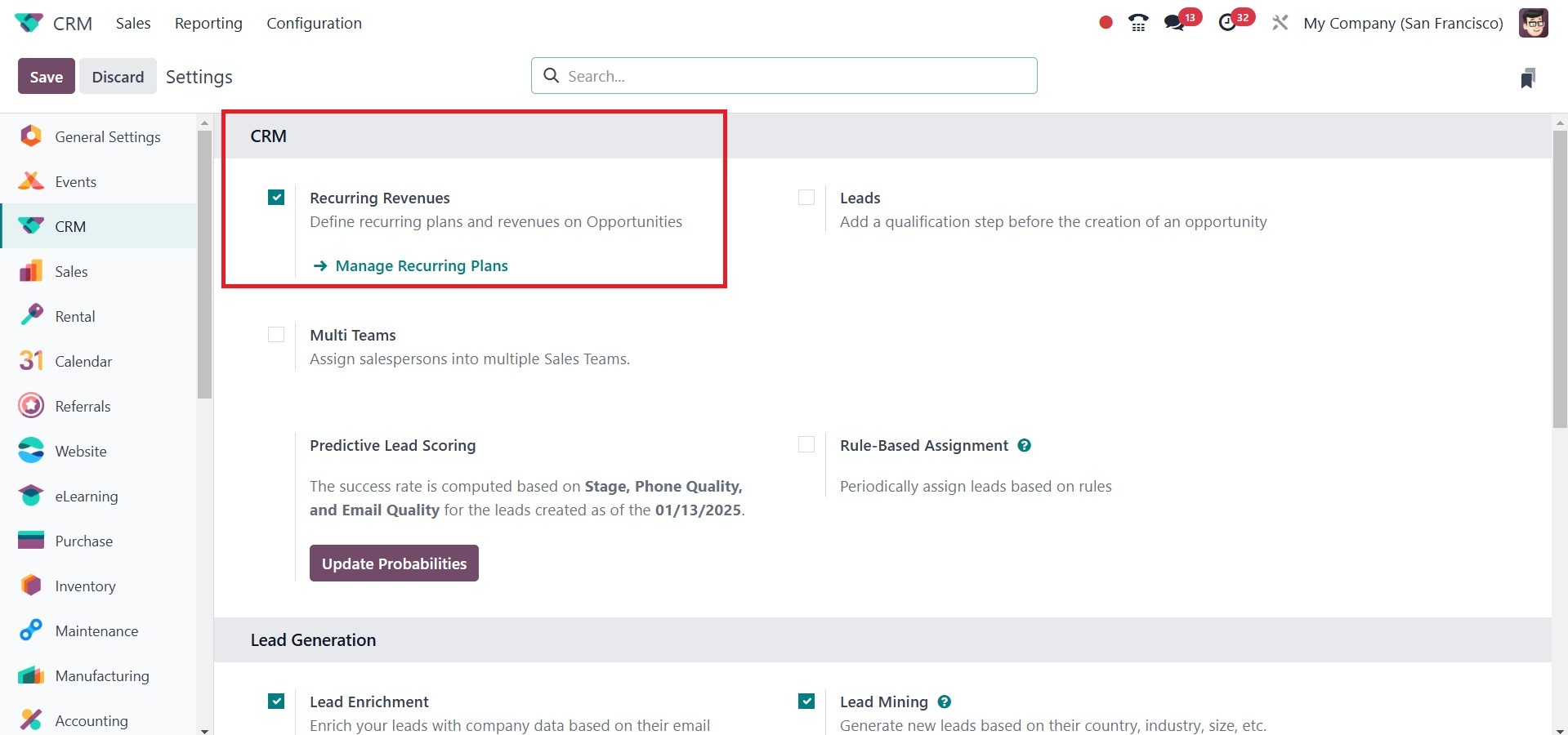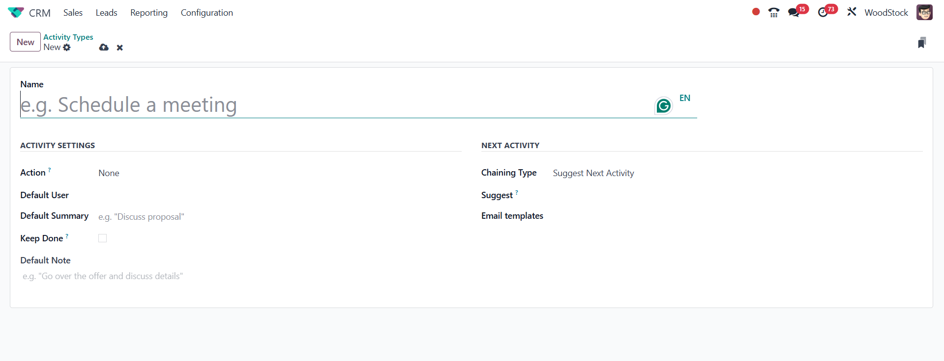 The Odoo 18 CRM module's