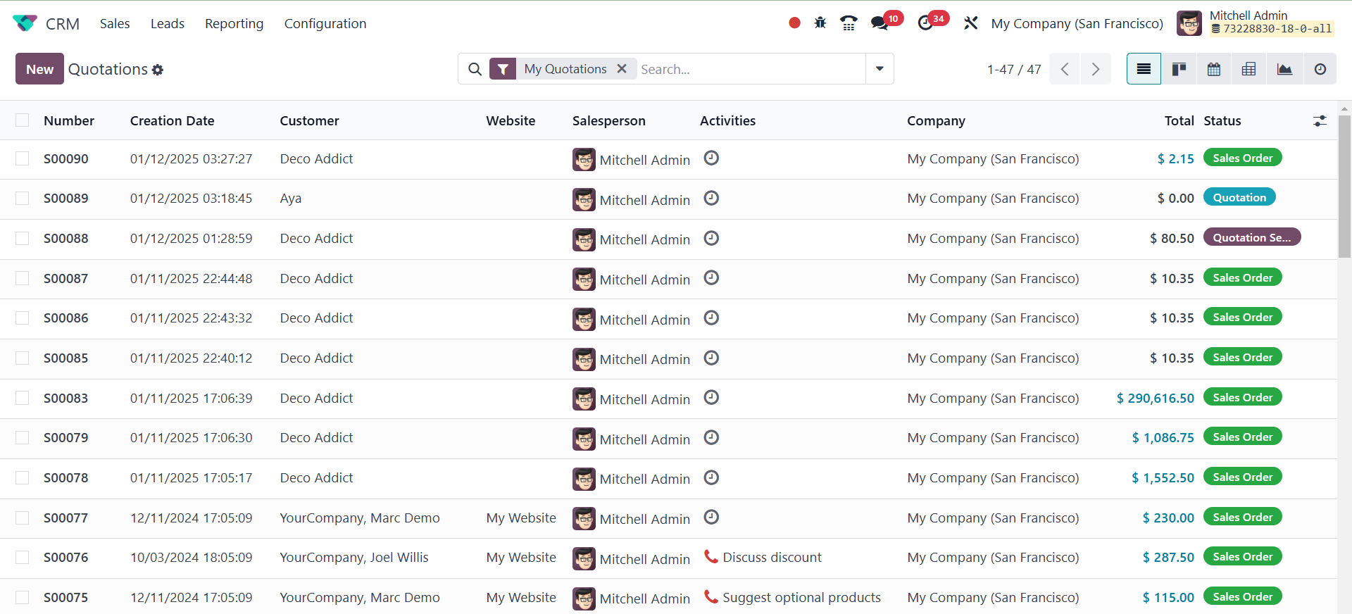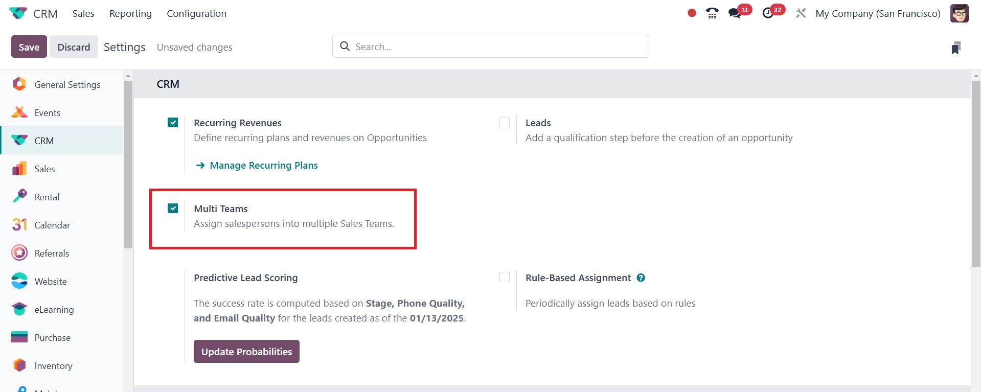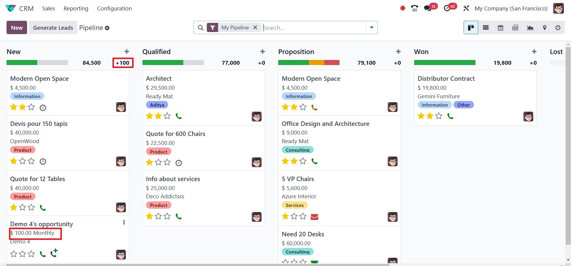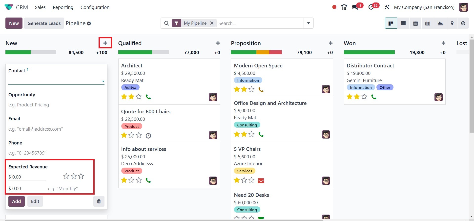 The Odoo 18 CRM module's