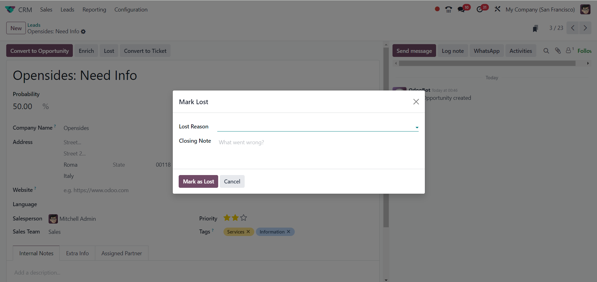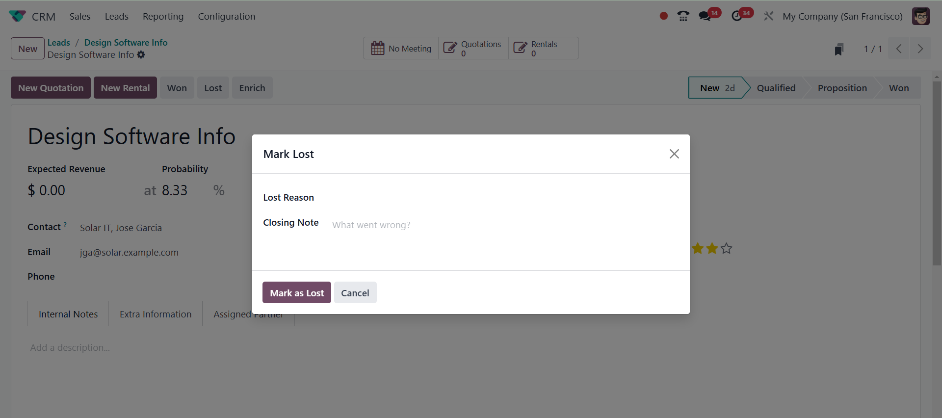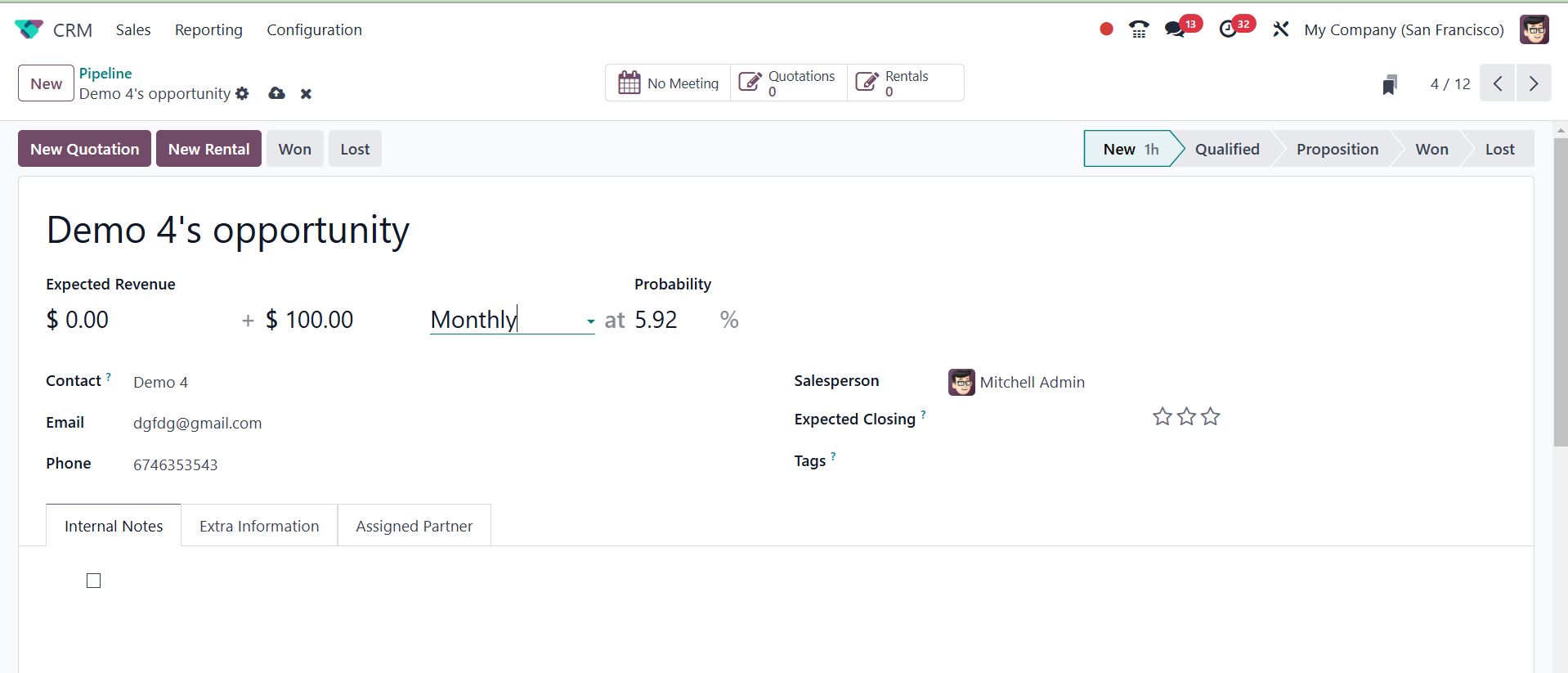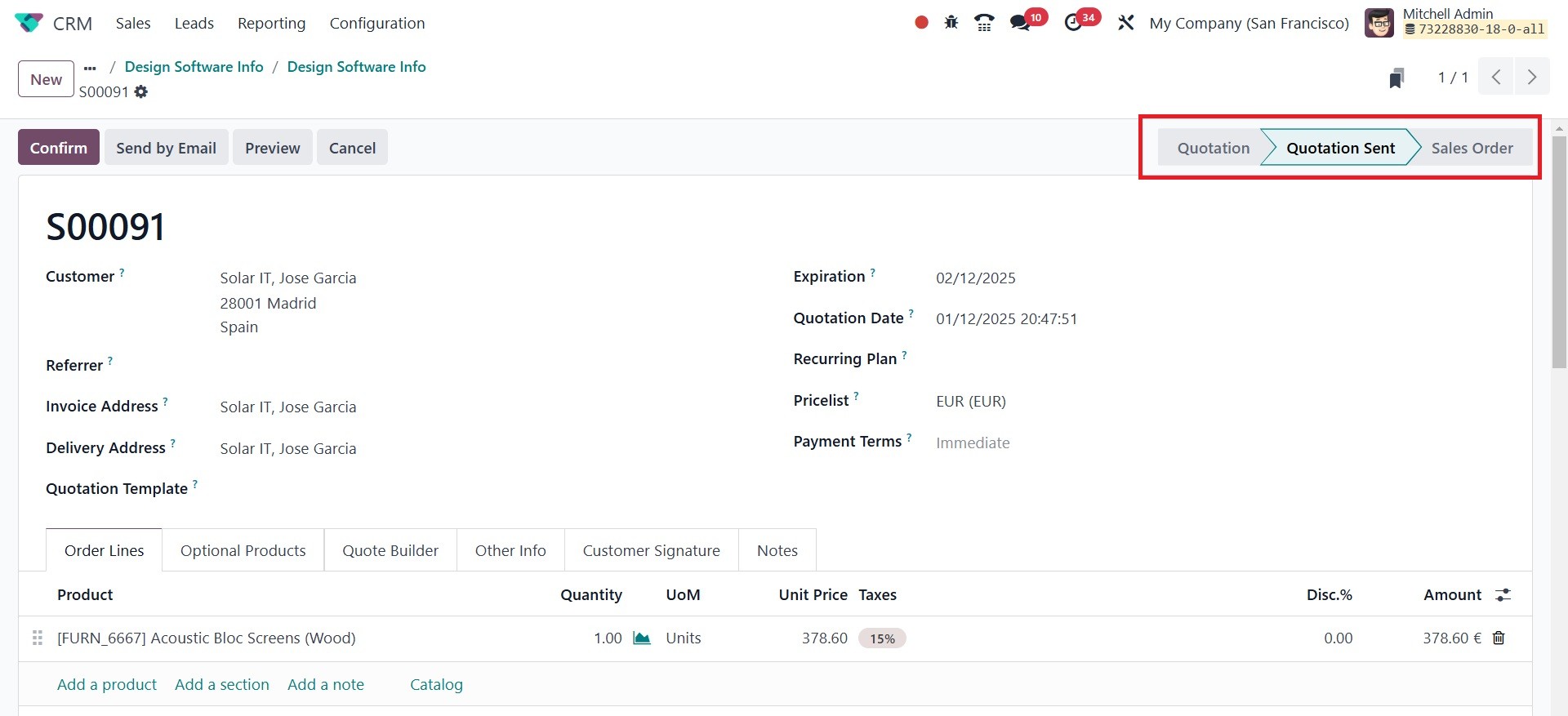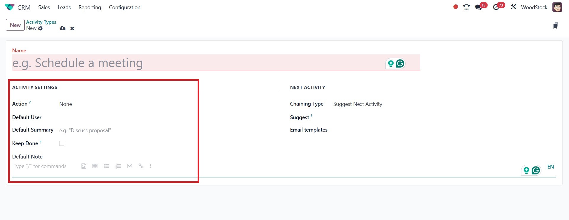 The Odoo 18 CRM module's