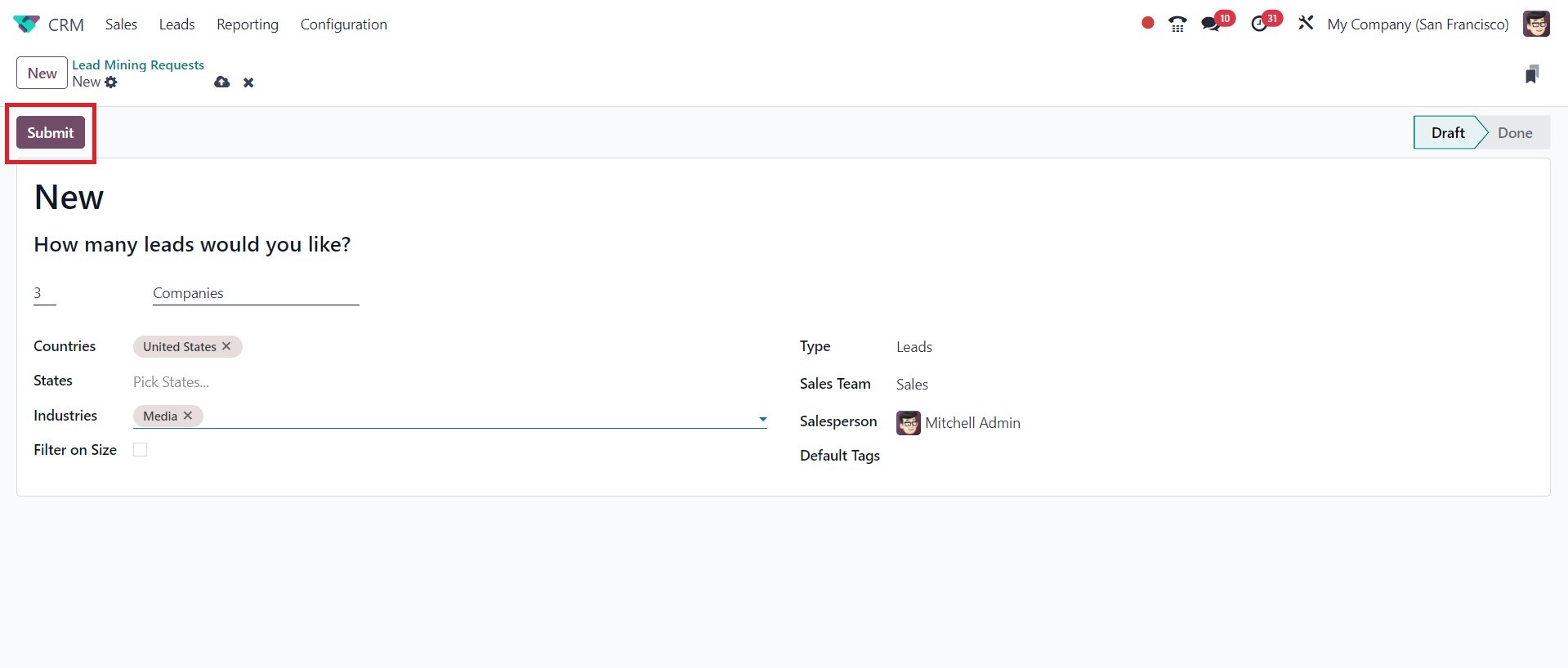 leads that fit the criteria.