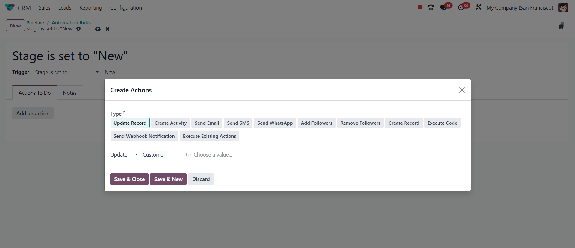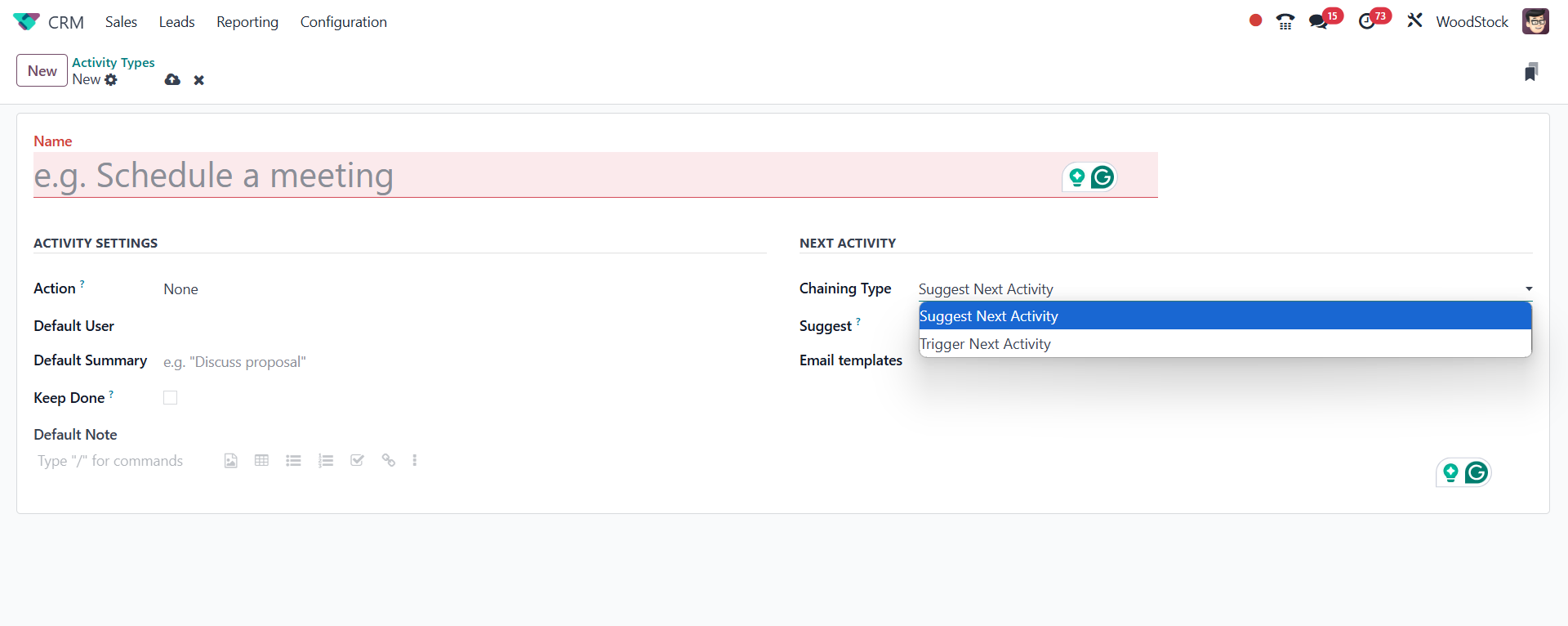 Type field. Odoo will