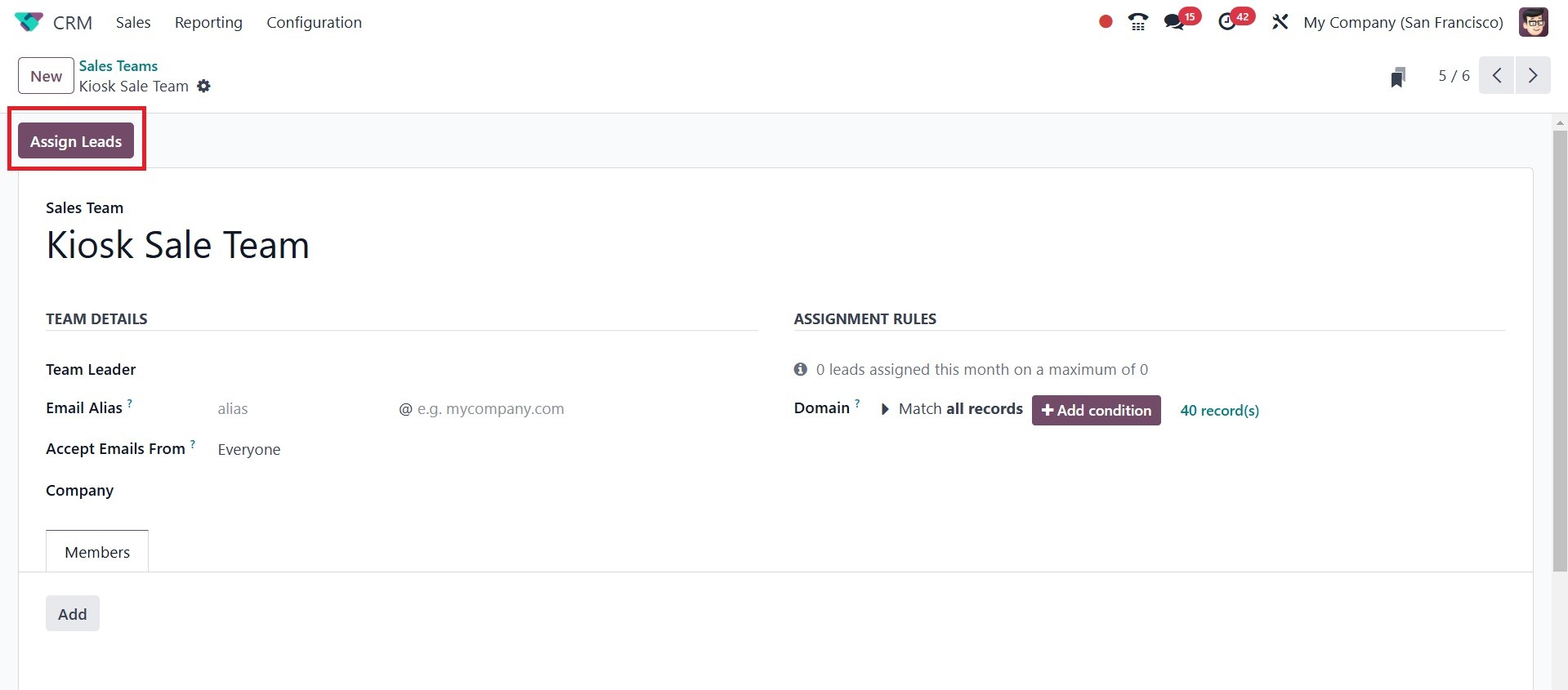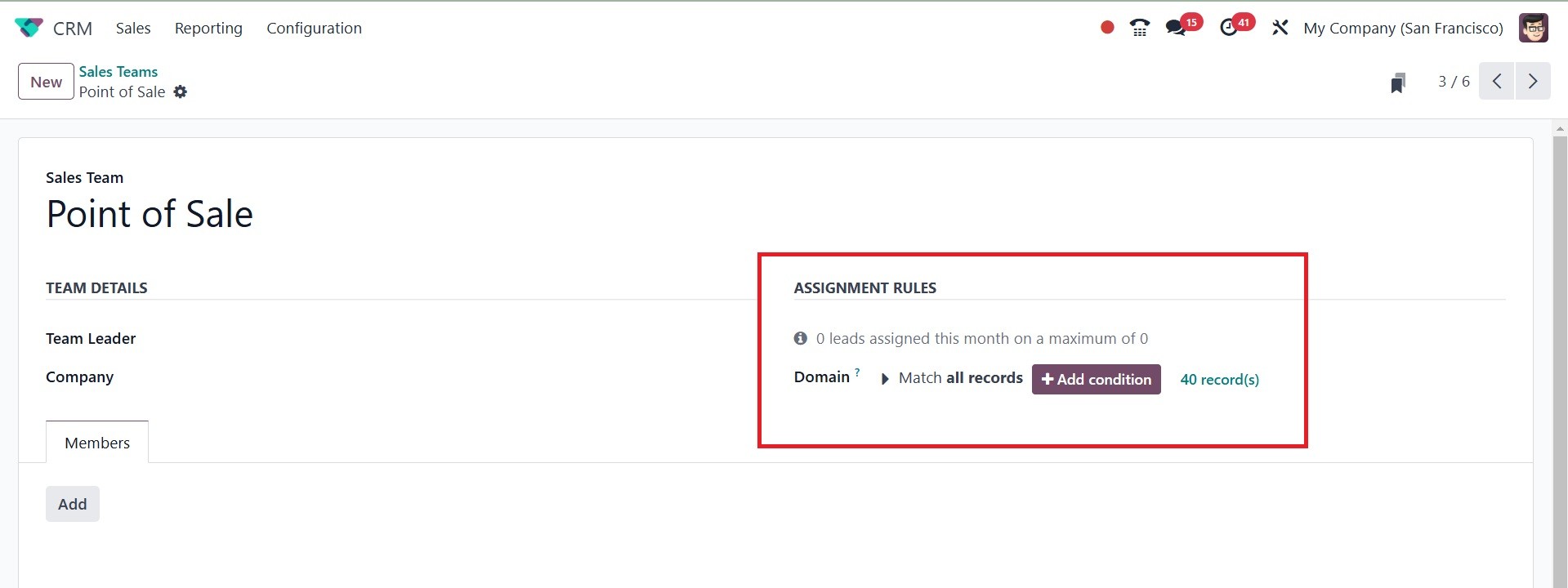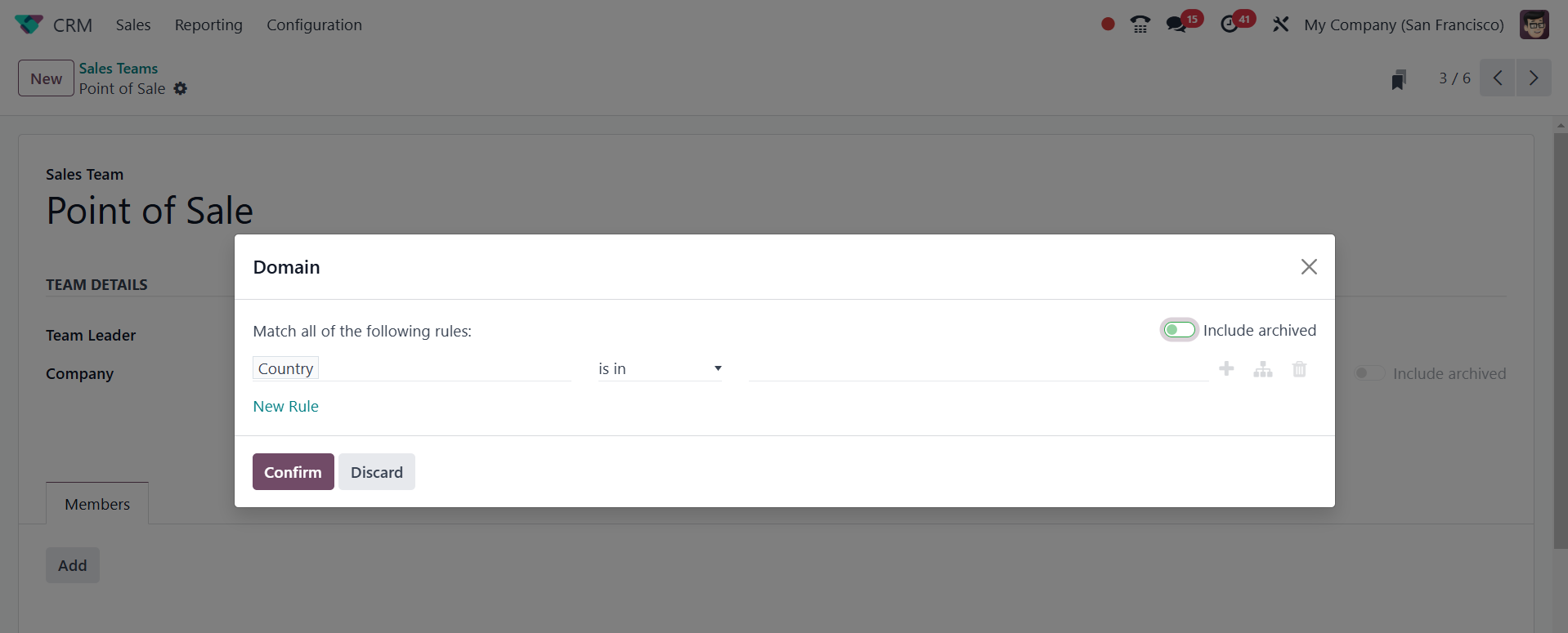formed. Choose the Sales Team