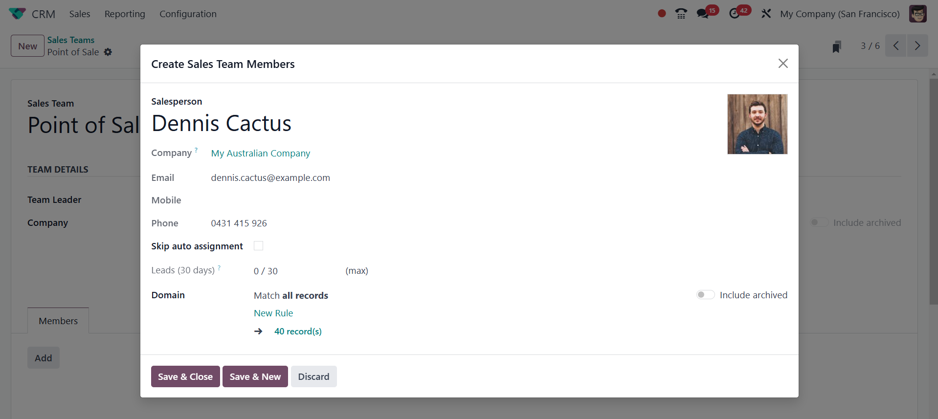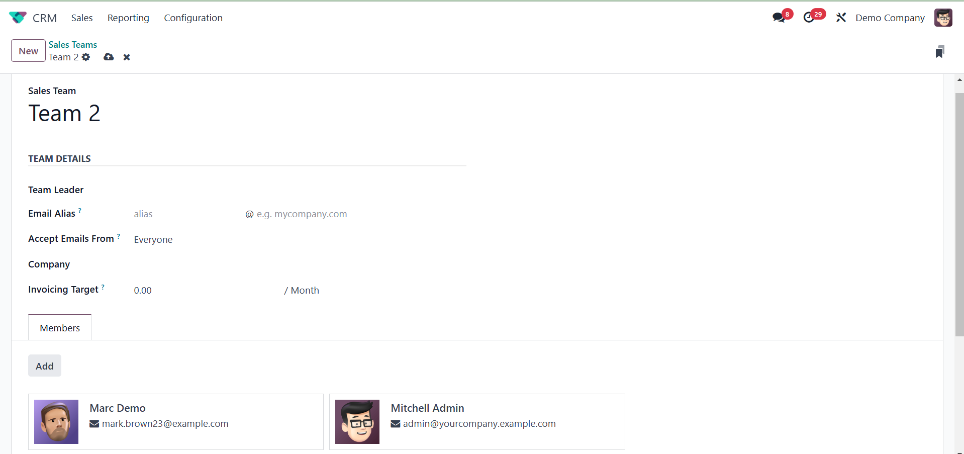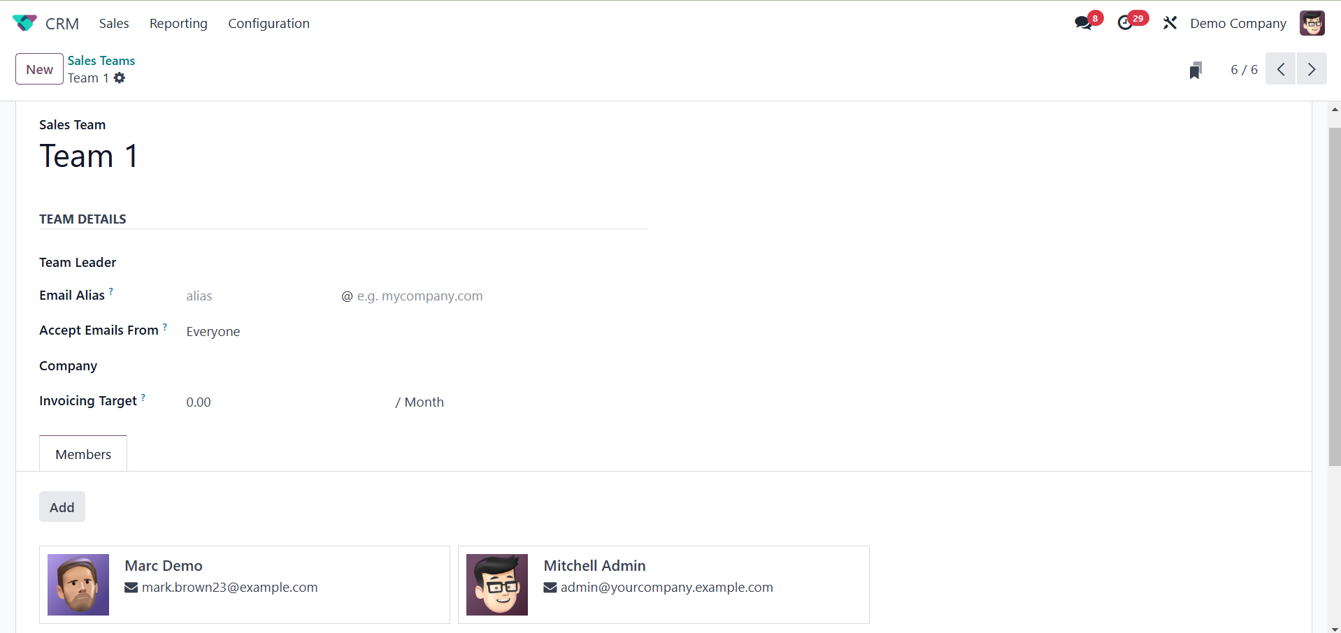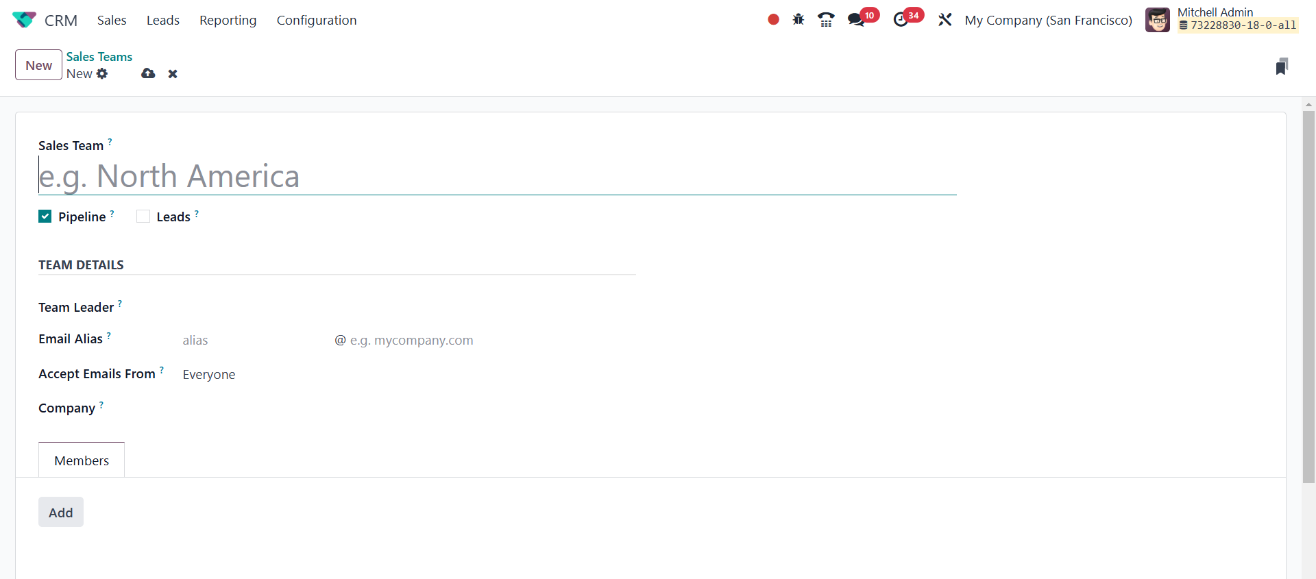 formed. Choose the Sales Team