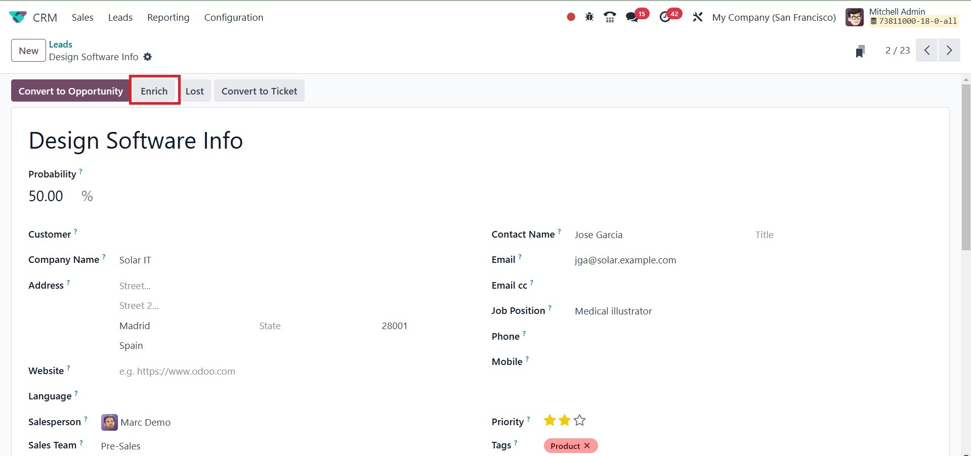 the lead enrichment tab.