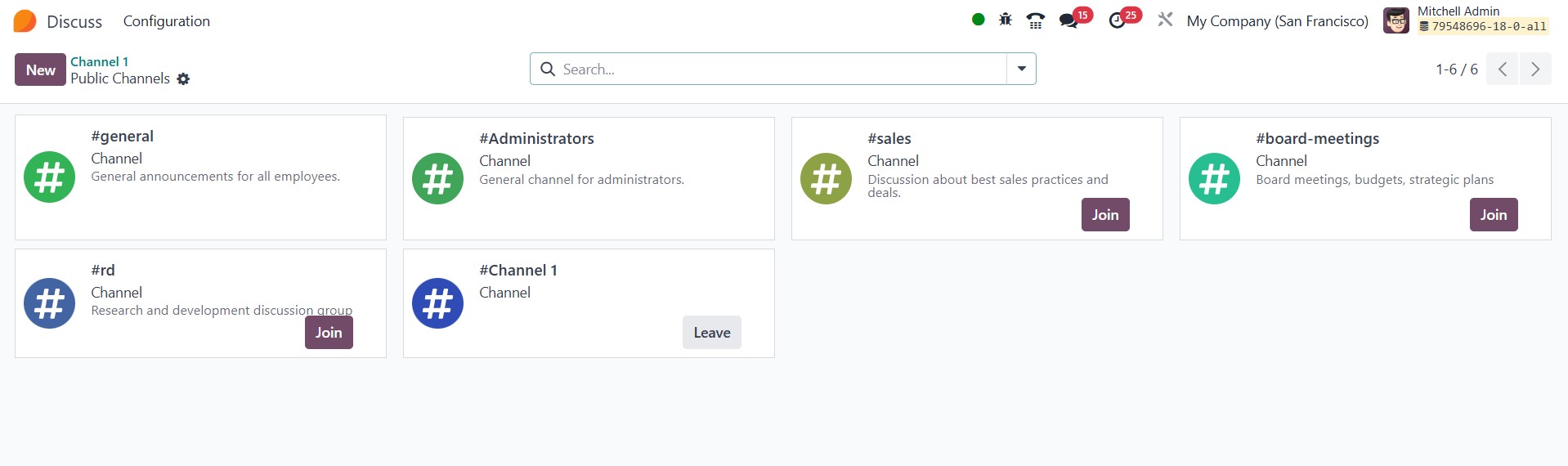 The Discuss module in Odoo 18 Enterprise Edition provides users with