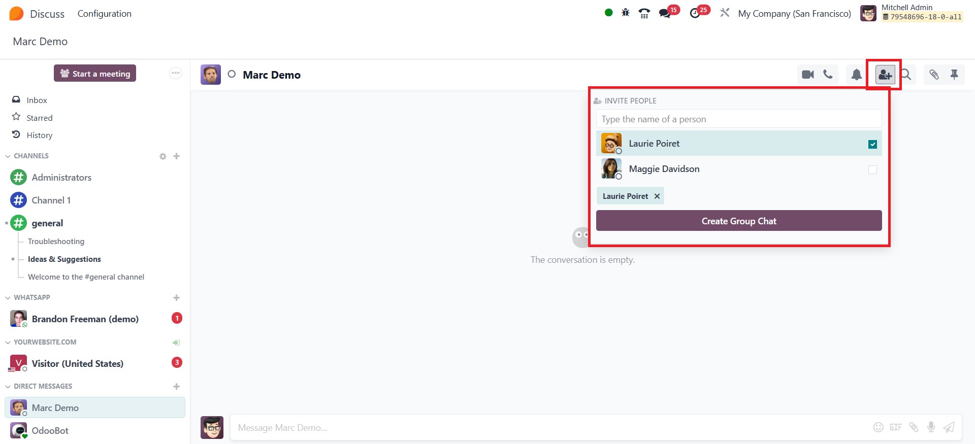 chosen, clicking on Create Group Chat adds them to the conversation.