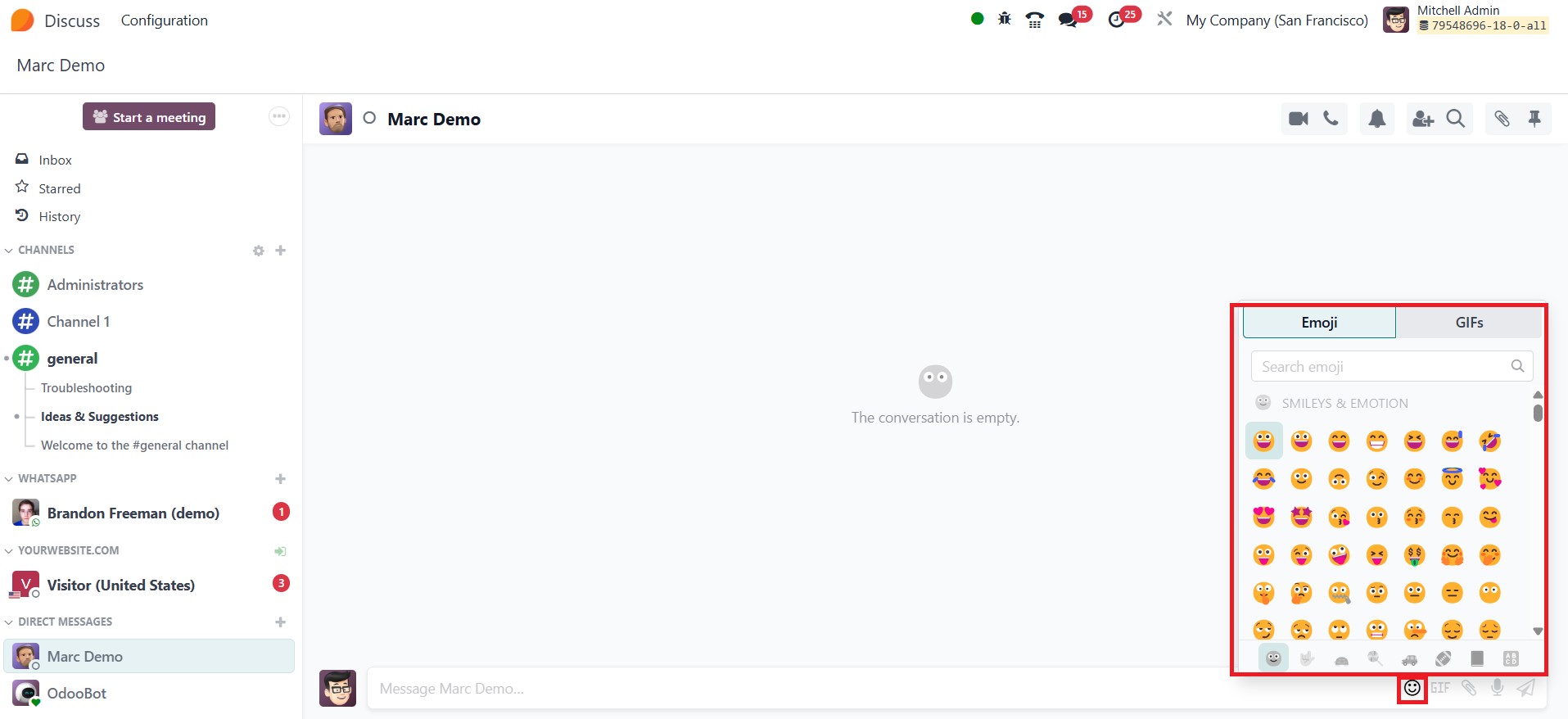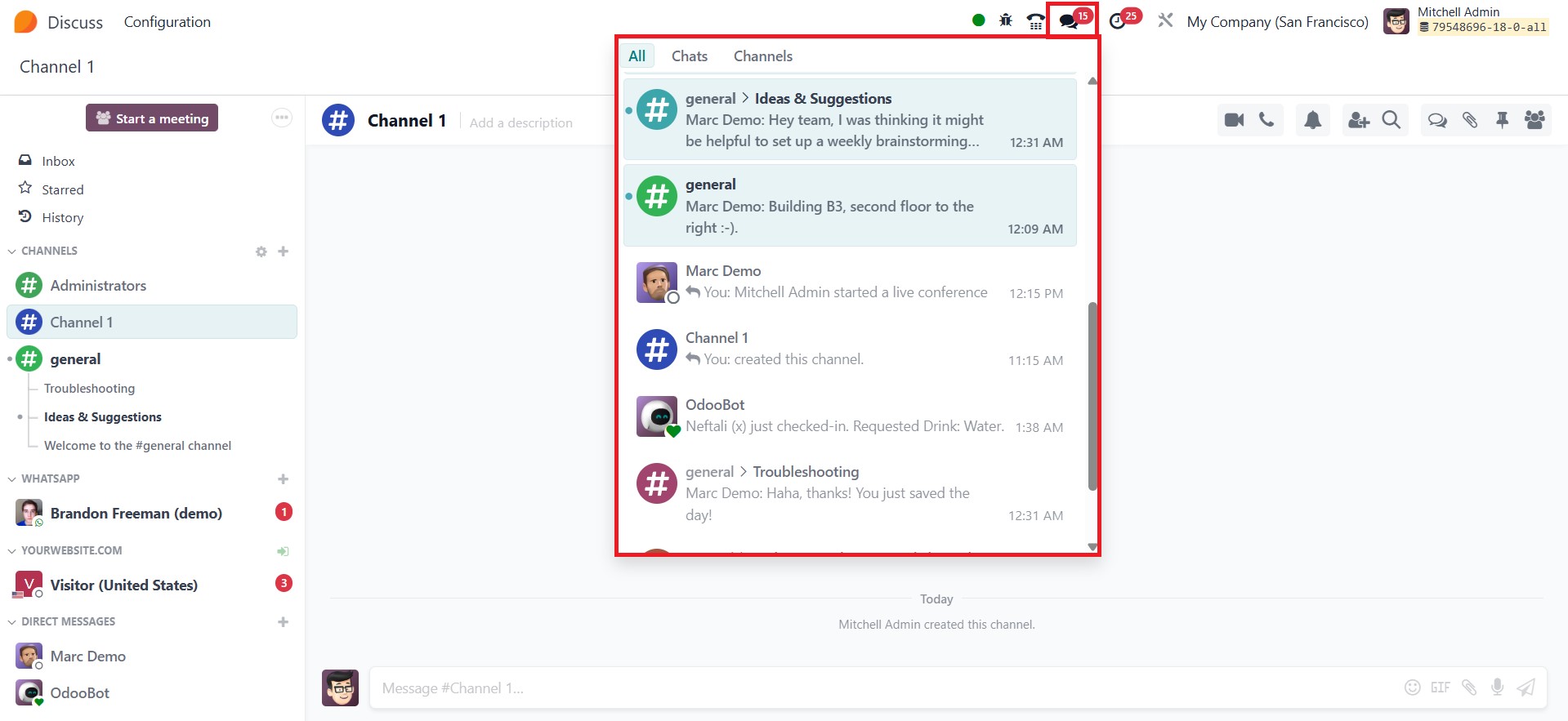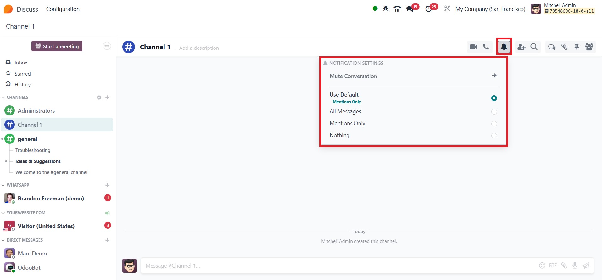 In Odoo 18, the Discuss module offers flexible notification