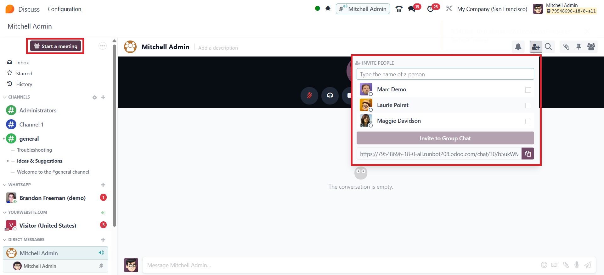 participants are selected, users may either click Invite to Group