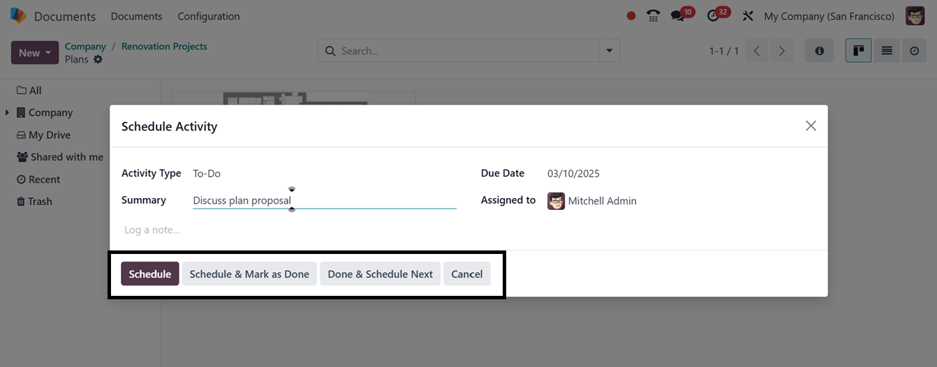 clicking the ‘Schedule an activity’ button. Here, you can provide