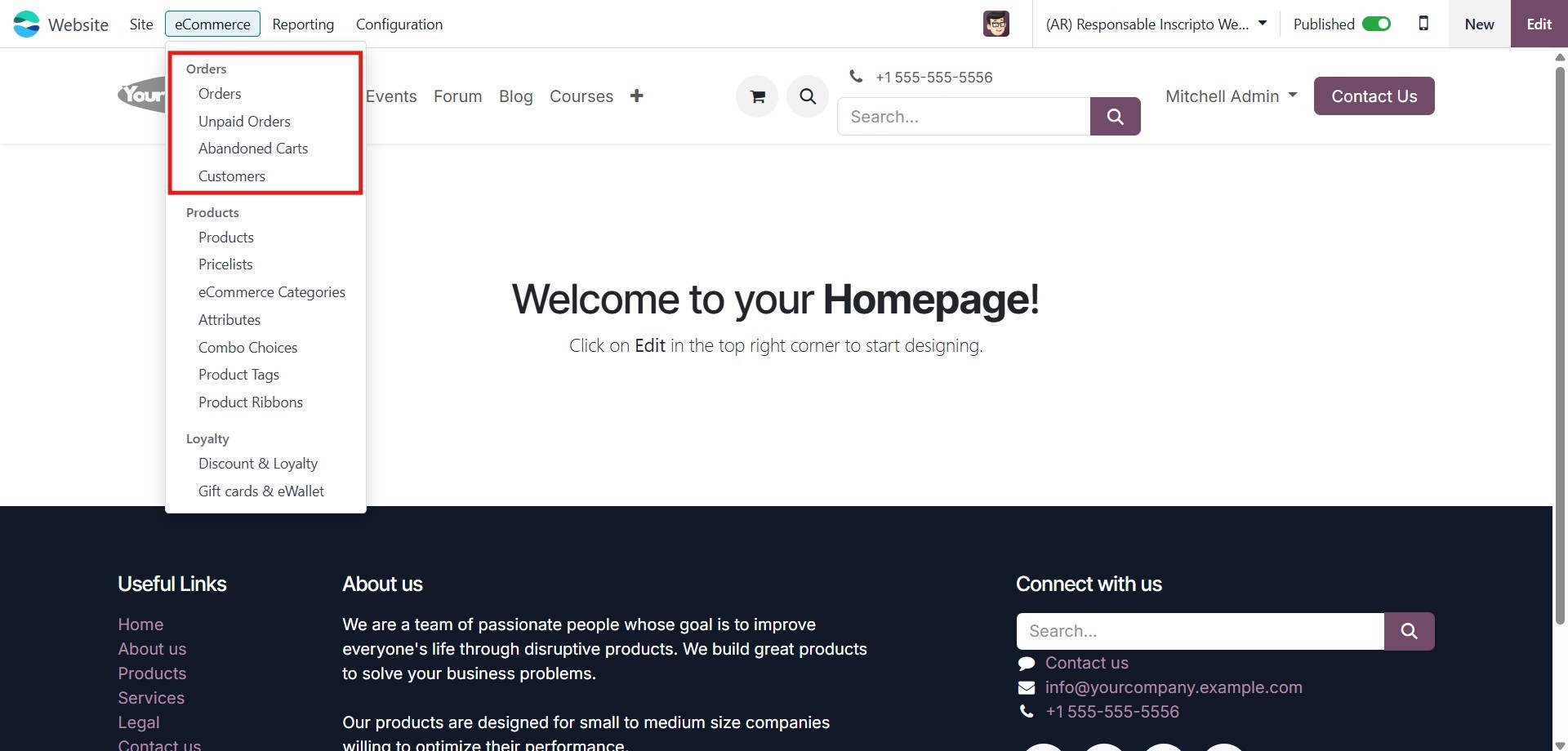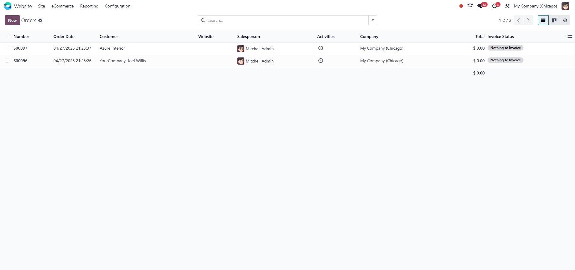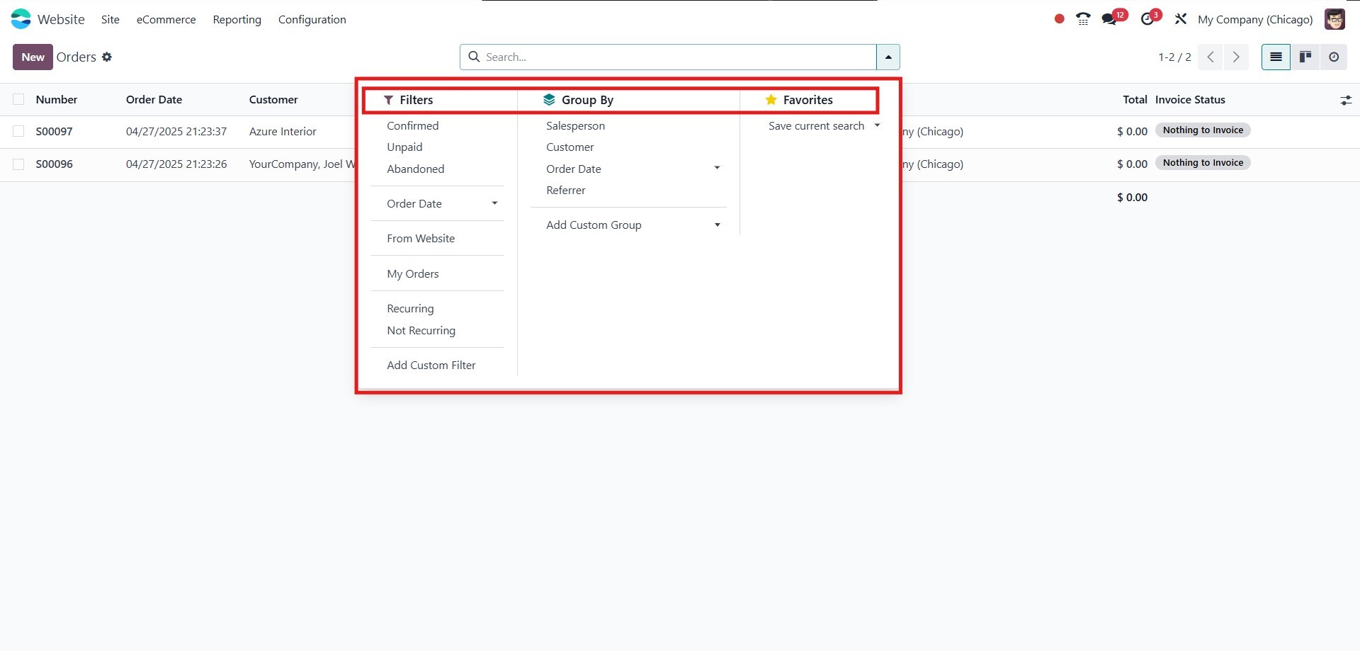 In Odoo 18, the Orders section, located under the eCommerce menu tab