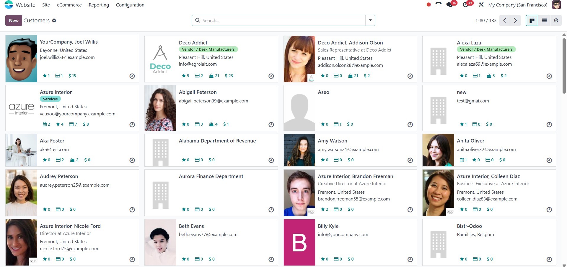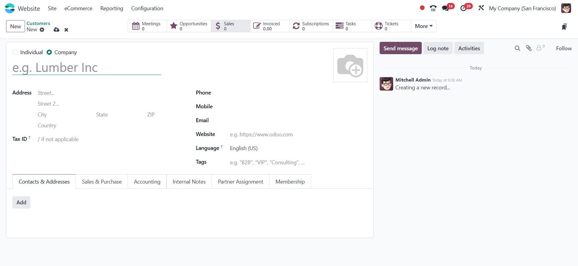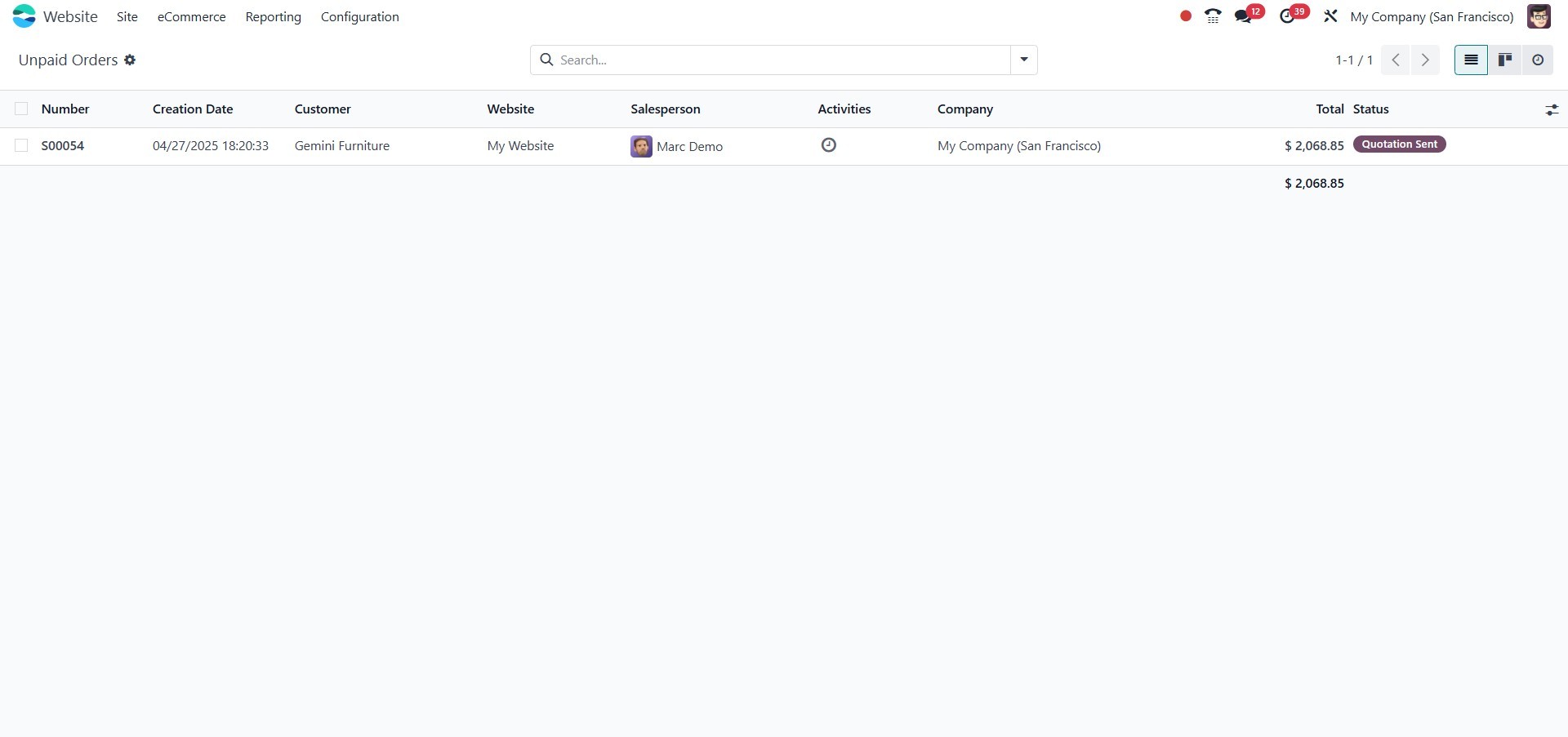 Creation Date, Customer, Salesperson, Next Activity, Company, Total,