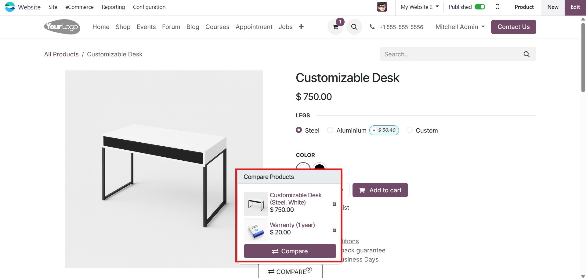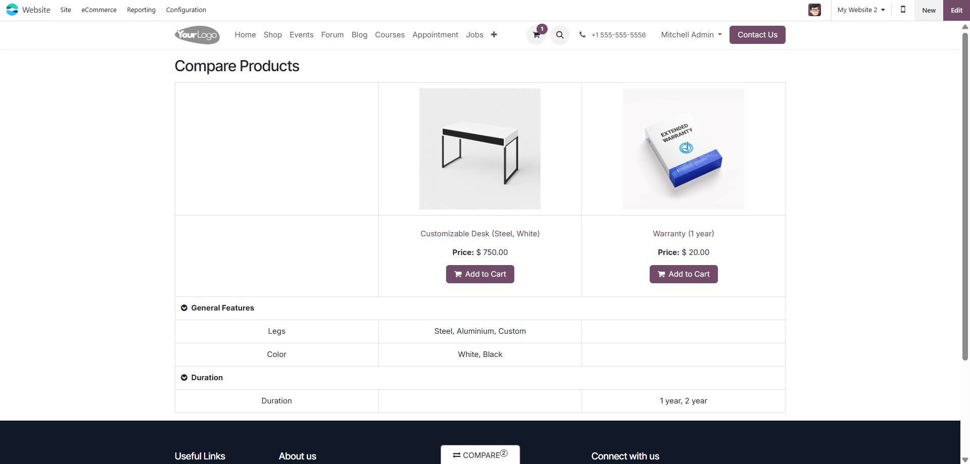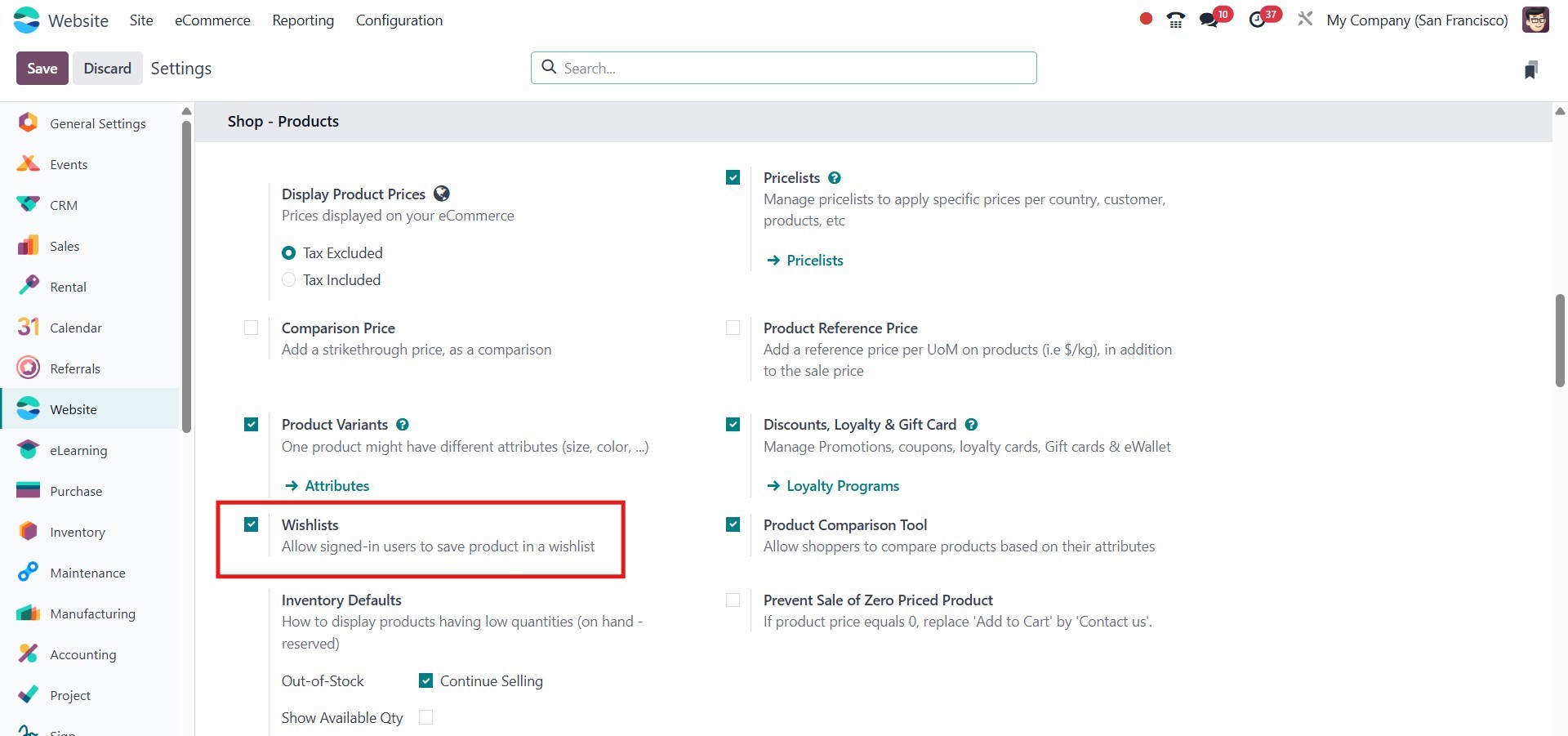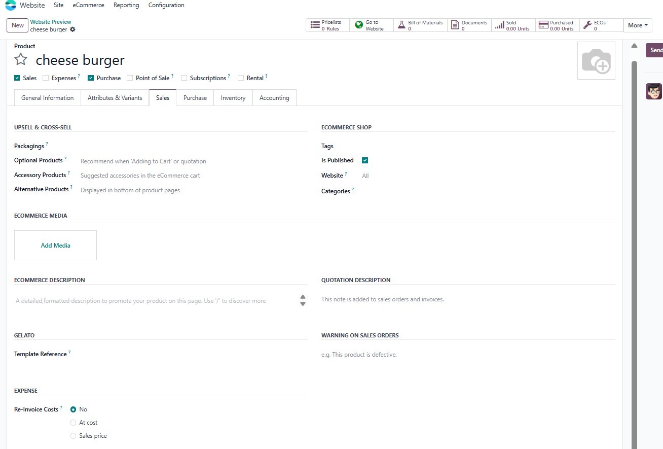 eCommerce module, allowing