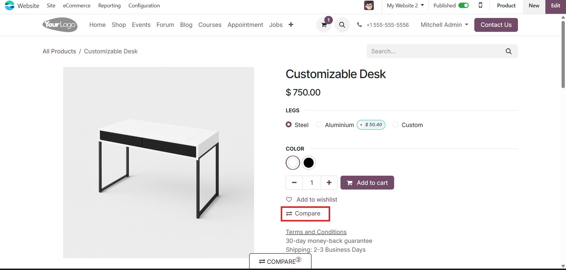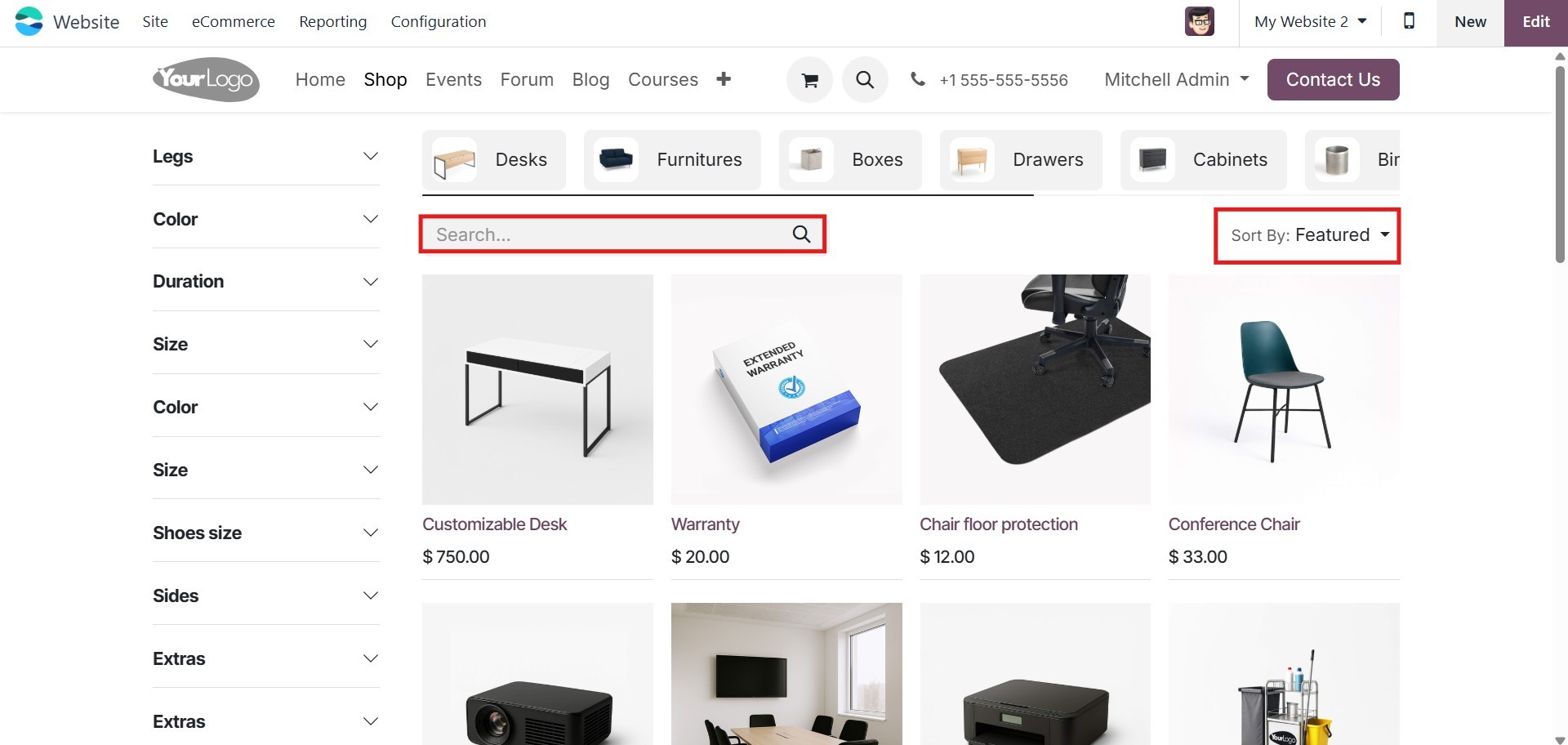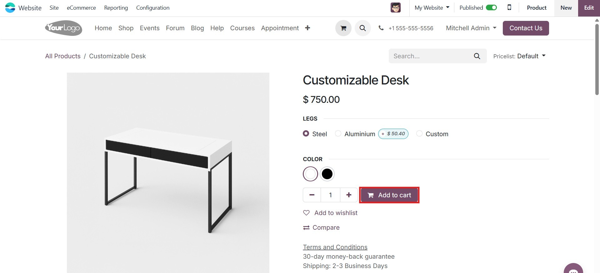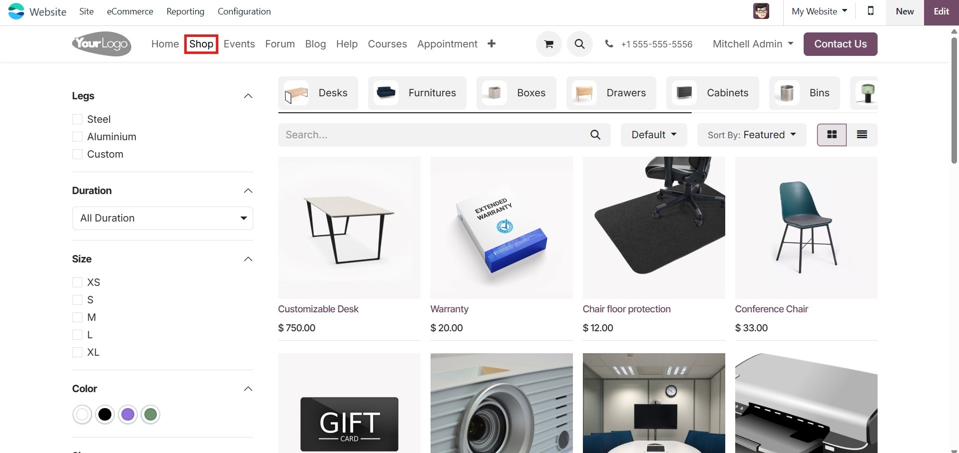 eCommerce module, allowing