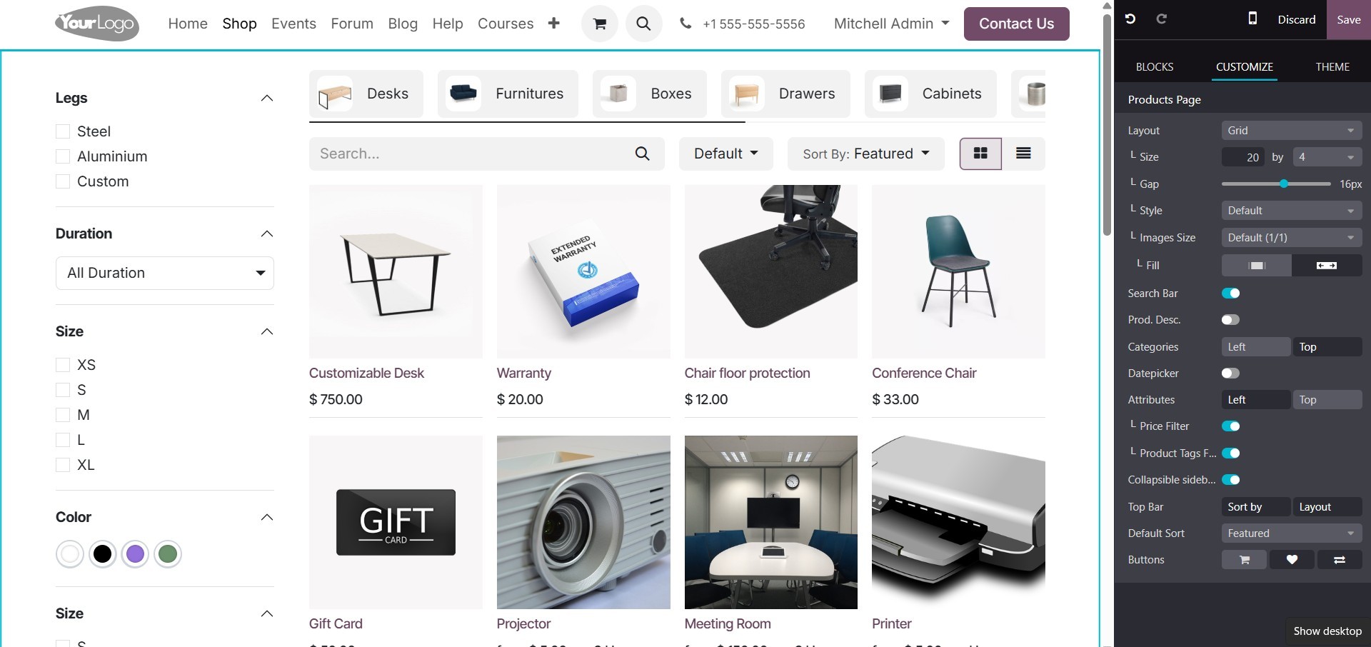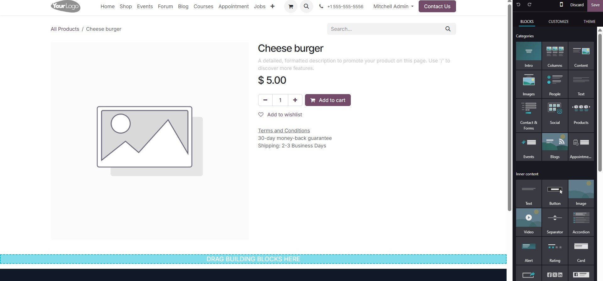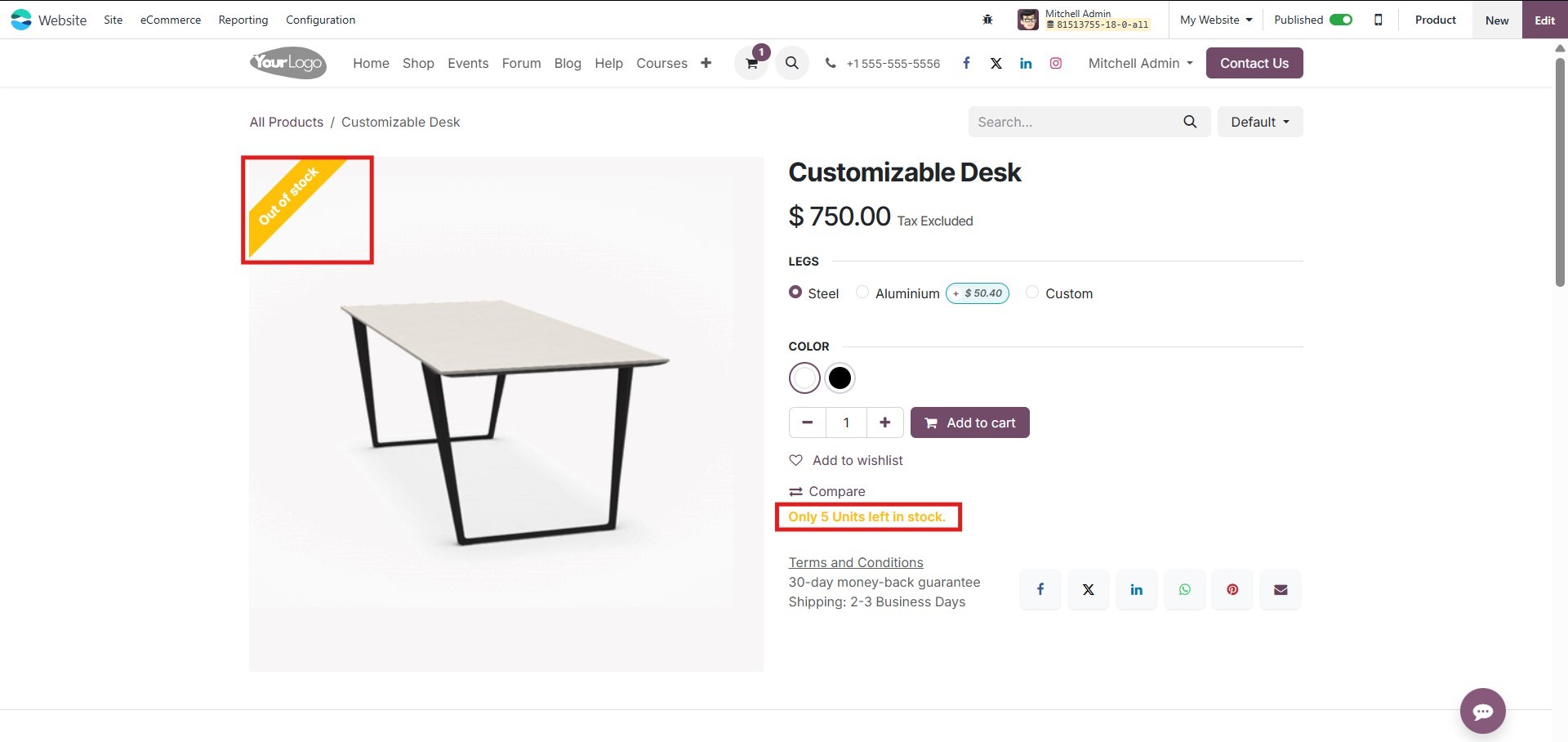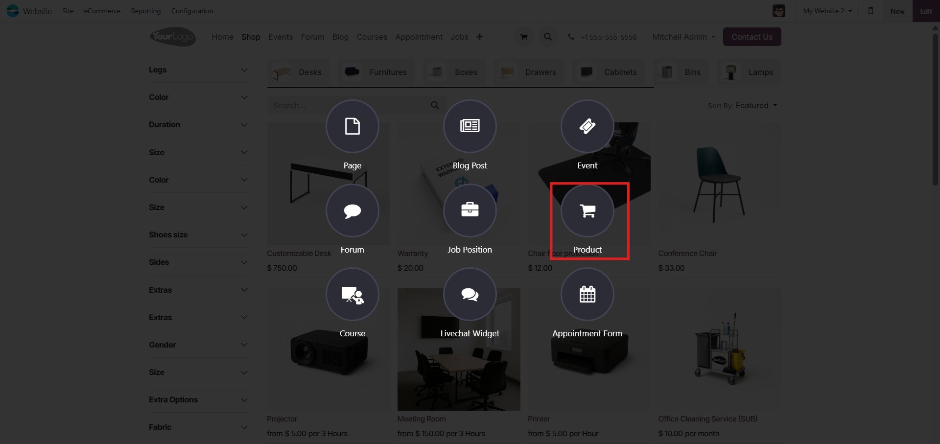 eCommerce module, allowing