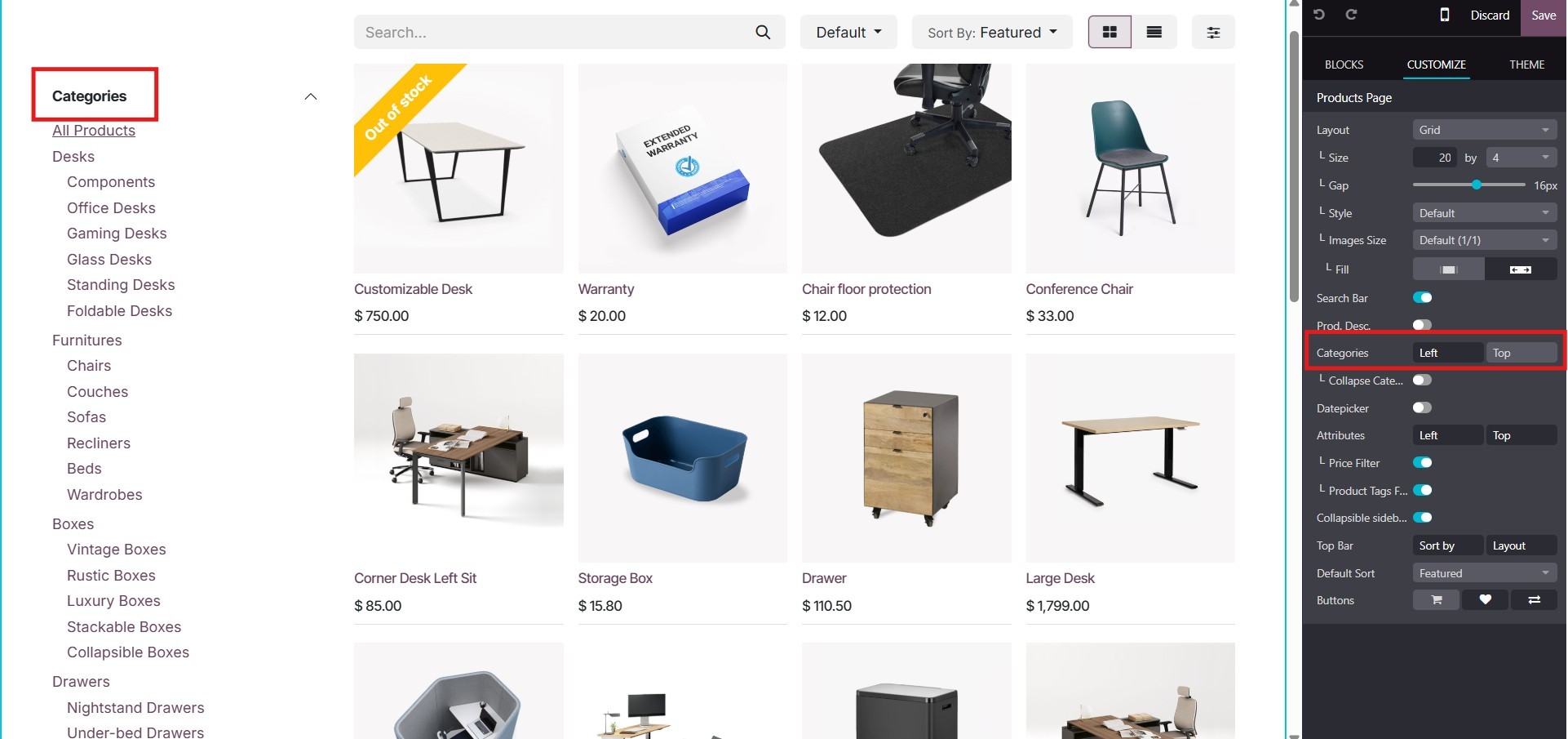 categories, the product will